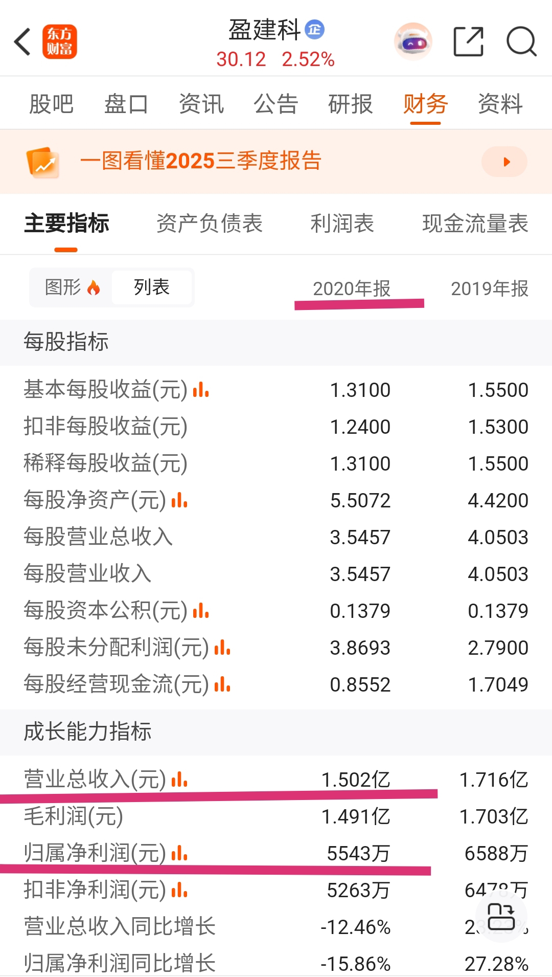 近五年的运营结果对照,广联达的发展和财务状况明显优于盈建科。营收比从2020年年报的26.66倍到2025年三季报的59.16倍,倍数系数增长了2.22。净利润比从2020年年报的5.96倍到2025年三季报的7.56倍,倍数系数增长了1.27。