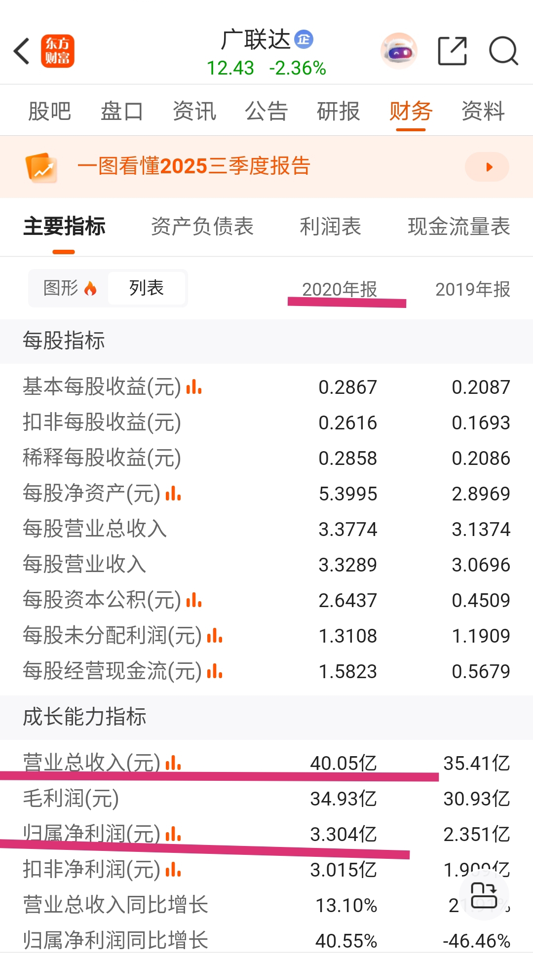 近四年半多的运营结果对照,广联达的发展和财务状况明显优于品茗科技。营收比从2020年年报的10.54倍到2025年三季报的14.93倍,倍数系数增长了1.42。净利润比从2020年年报的3.38倍到2025年三季报的6.42倍,倍数系数增长了1.90。
