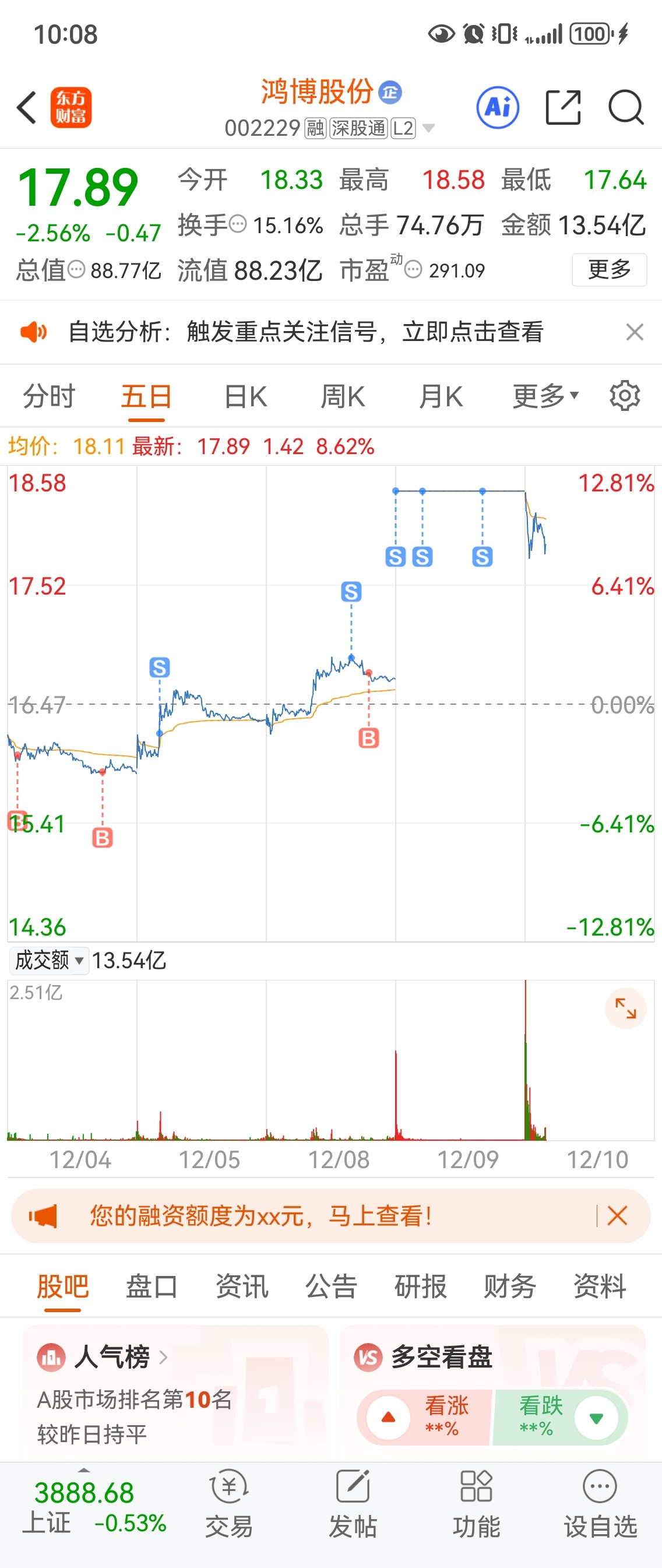 $鸿博股份(SZ002229)$ 昨天跑路的!希望今天来一个金典的倍量阴洗盘,后续卡出买点再来
