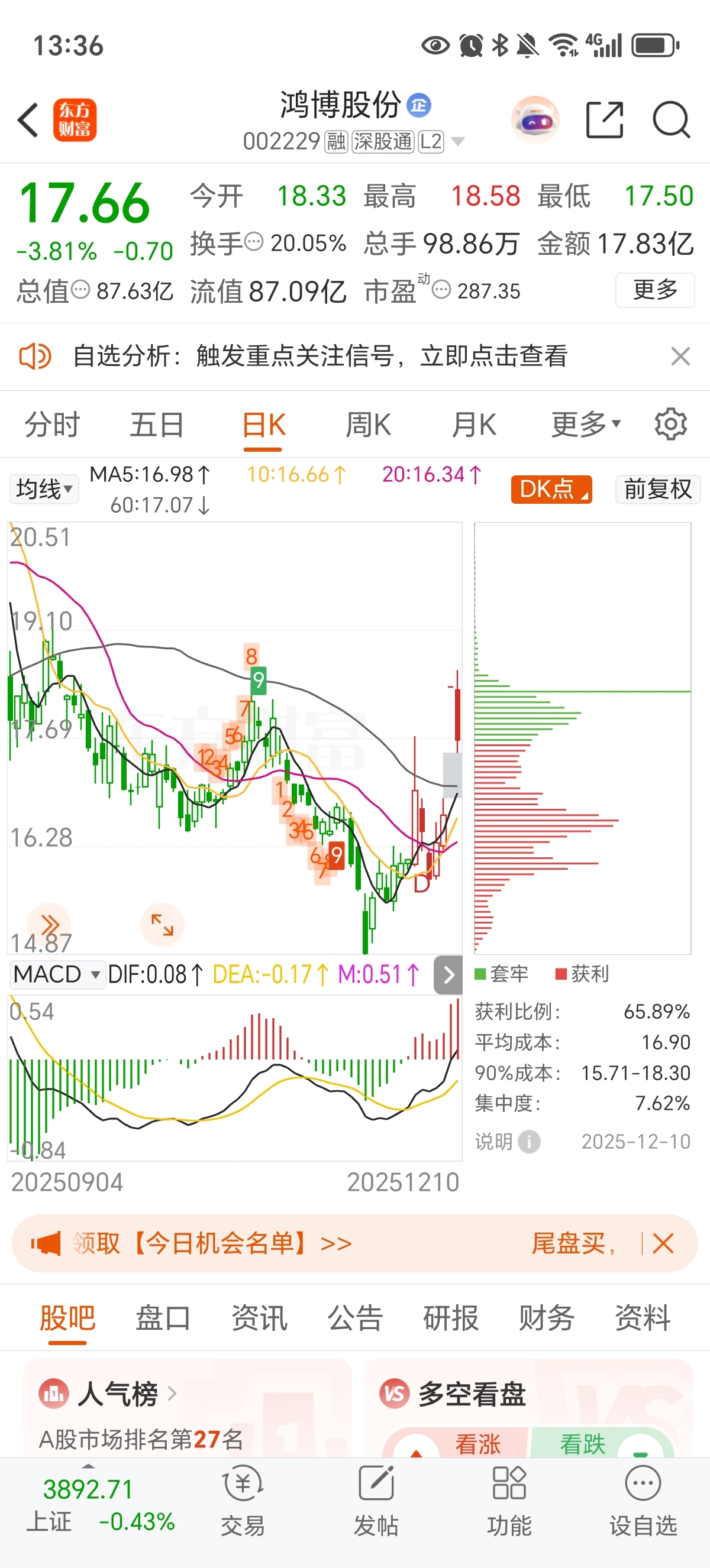 $鸿博股份(SZ002229)$ 昨天打板的资金又没跑,大家慌啥,看看我的神农种业,昨天跌那么多我都没跑,今天涨停了