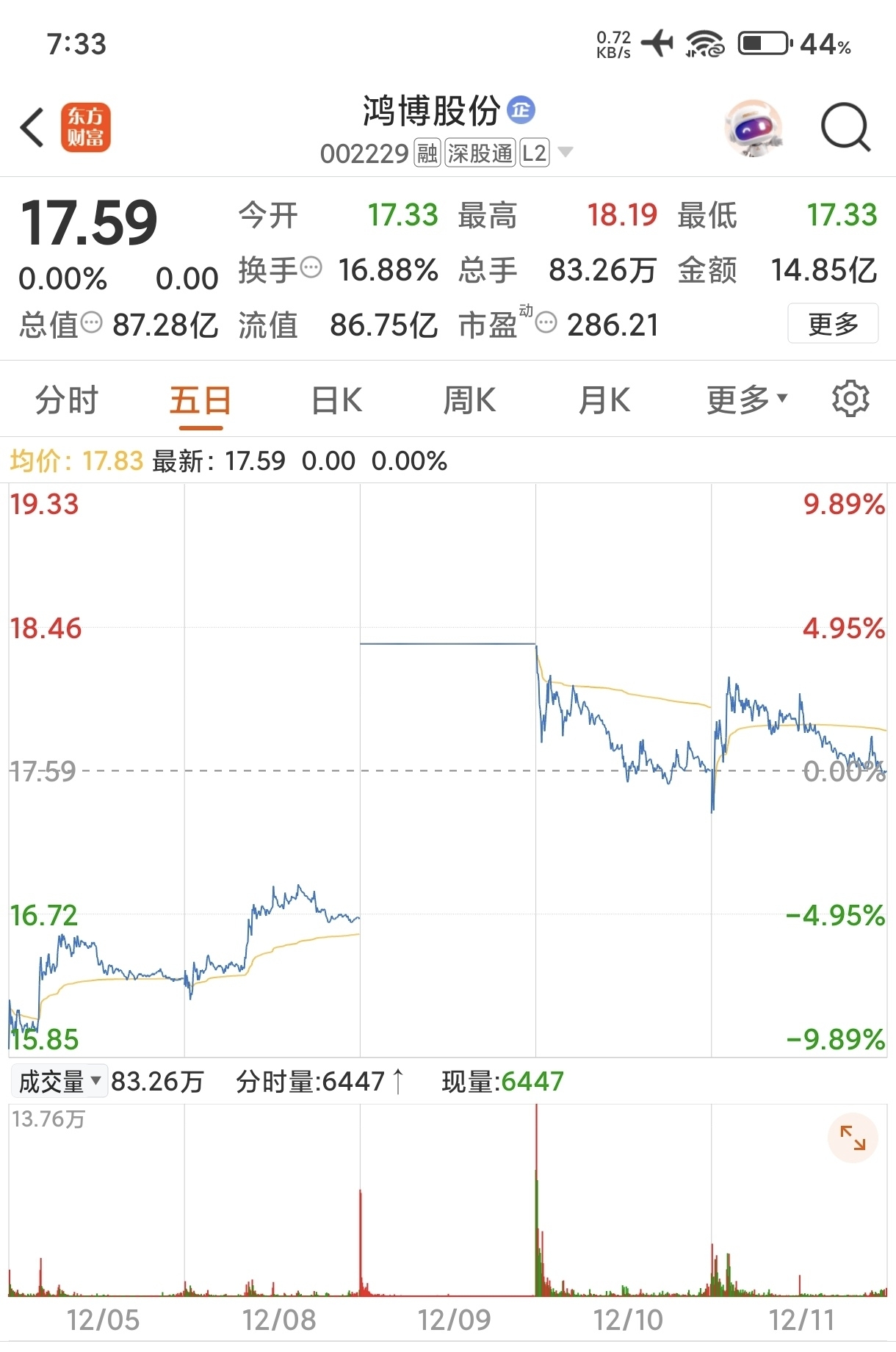$鸿博股份(SZ002229)$ 怎么看,没下五日线,走着看!