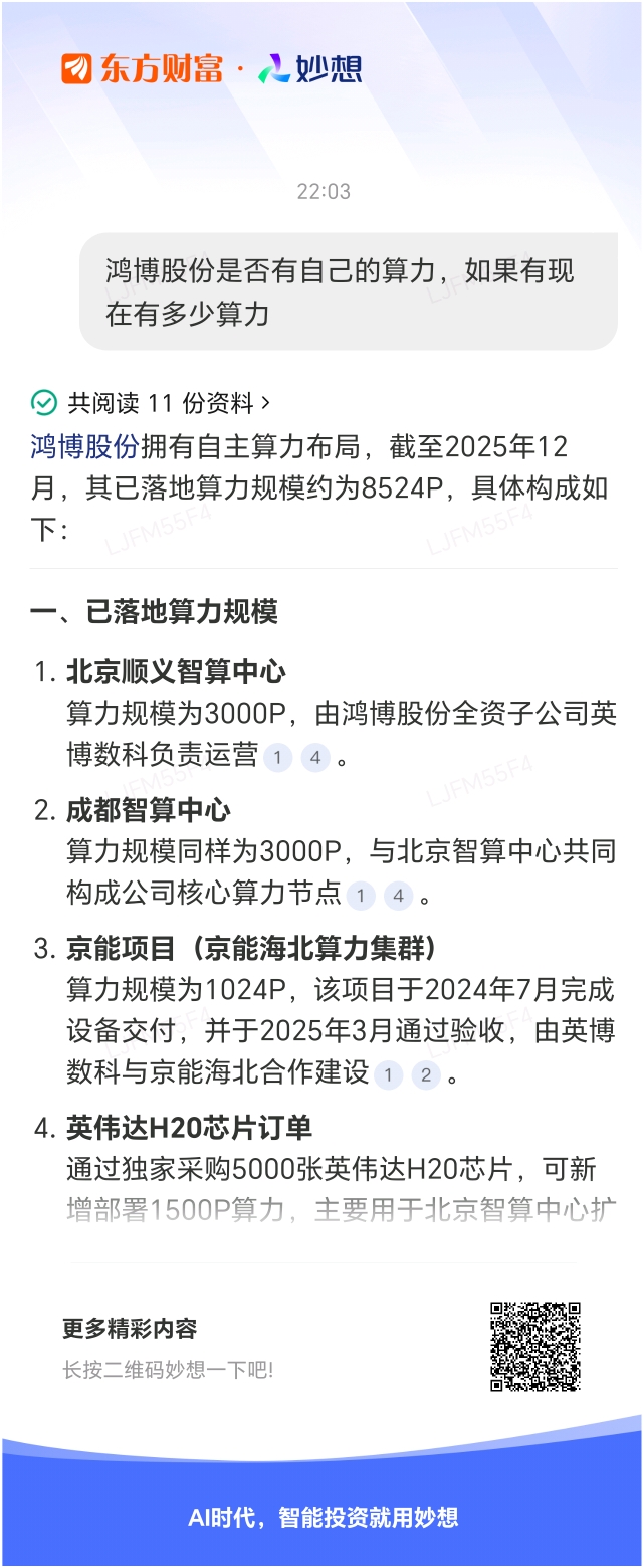 #@妙想,你怎么看?# 妙想一下:鸿博股份是否有自己的算力,如果有现在有多少算力