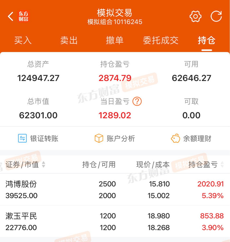 亏的没有钱了只能模拟的炒股了