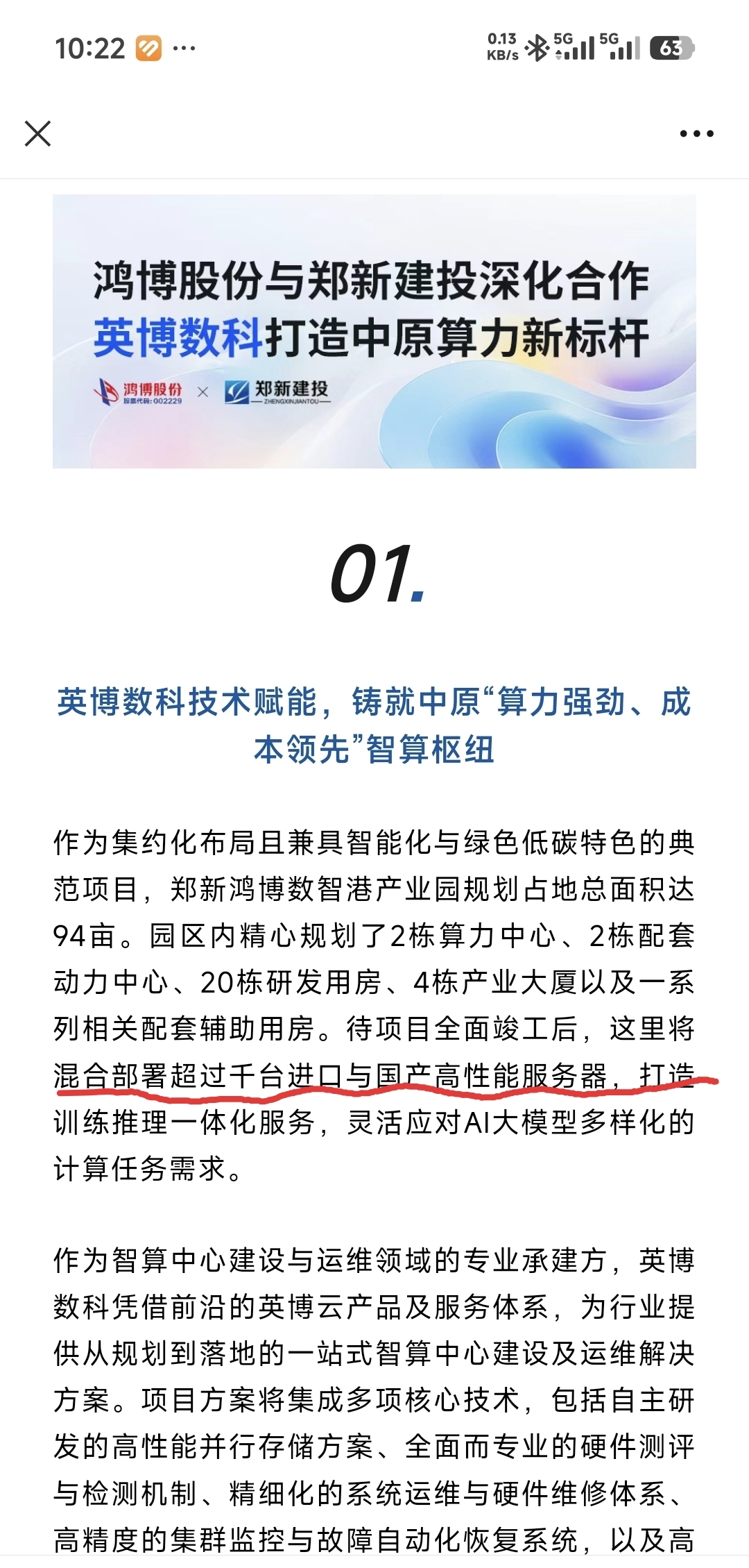 虽然是四月的旧闻,但当时河南的智算中心计划就是国产与进口混合部署。按照现在的推测