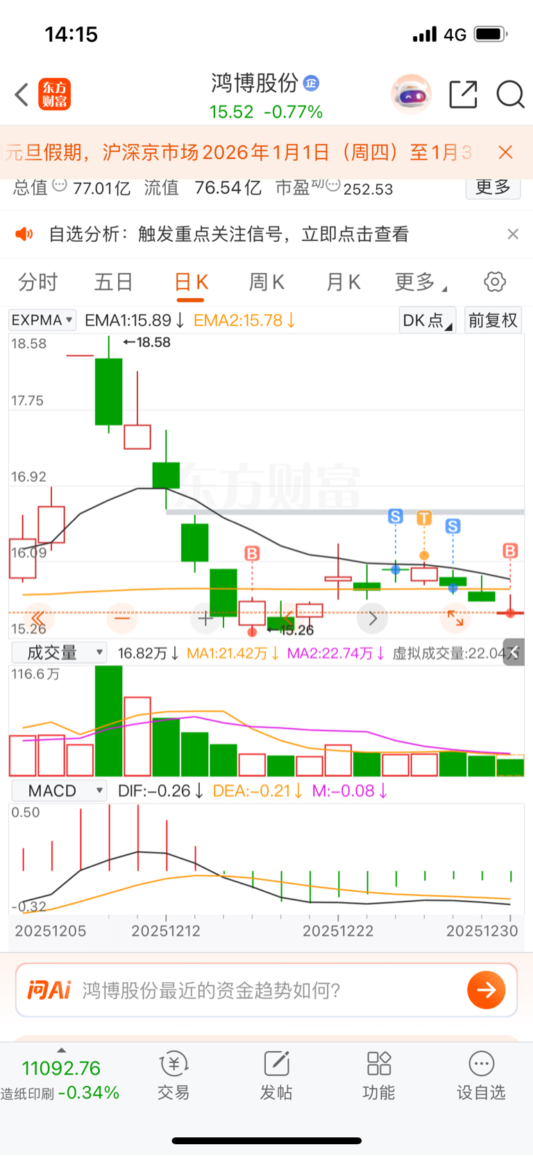 $鸿博股份(SZ002229)$ 抄底了啊