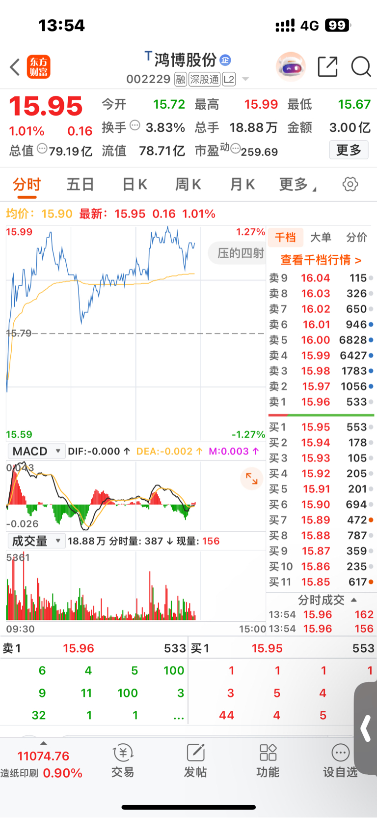 $鸿博股份(SZ002229)$ 真牛啊,2000多万压单压住,不仅压盘还砸盘