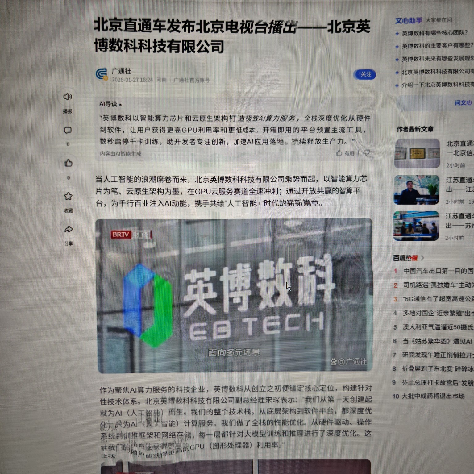 可能要发力了?今天难得看到英博数科上媒体宣传了。视频的开头2025中国人工智能行