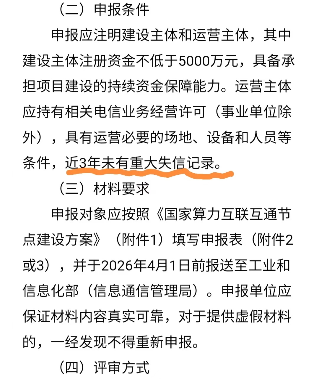 算力互联互通有一条要求近3年未有失信记录,老鸿的算不算呢?