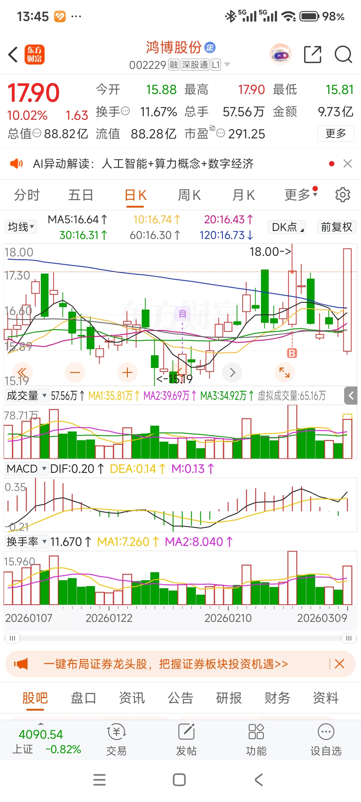 $鸿博股份(SZ002229)$ 买到票了