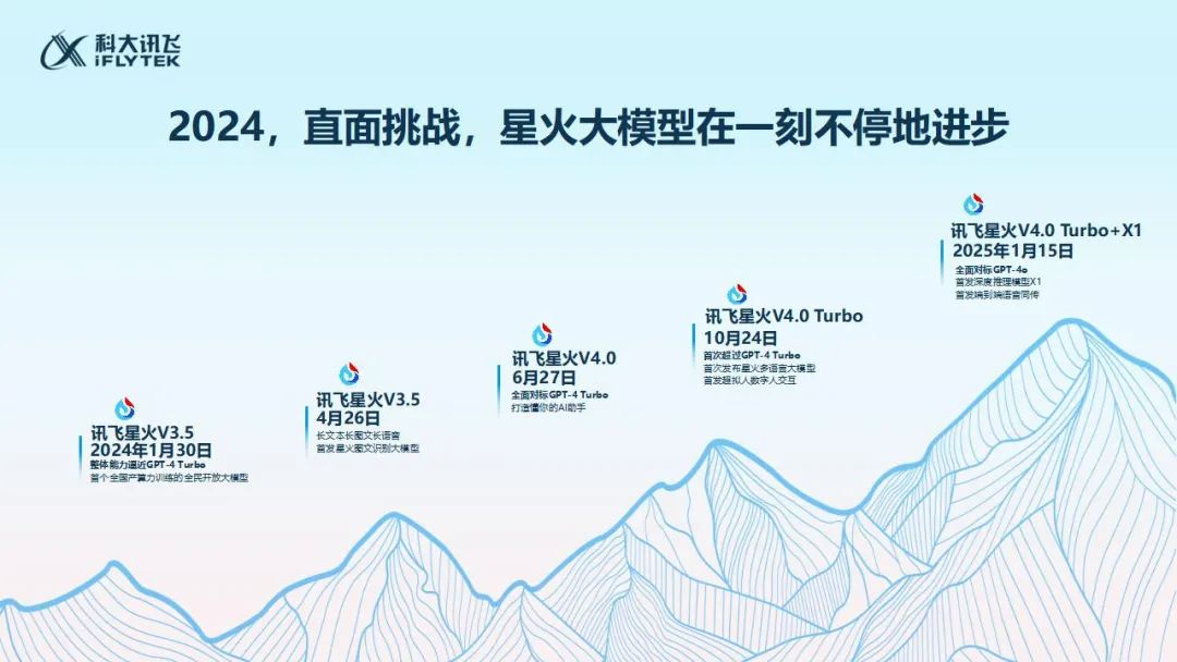 就在2025年1月15日,讯飞星火4.0 Turbo的底座能力再次升级,并首发国内首个基于全国产算力平台训练的具备深度思考和推理能力的大模型——讯飞星火深度推理模型X1,解决了国产算力大规模集群训练在深度思考和长思维链推理方面面临的全新挑战,用更少的算力,更小的尺寸,达到业界一流效果,获得了诸多客户、投资人、C端用户自主测试后的一致好评。这是全国产算力集群的又一个里程碑。刘庆峰坦言,由于讯飞星火X1的部分任务确实很难,且在国产化算力平台上的训练时间较短、数据量较少,还有很大提升空间,今年一季度将有新升级。