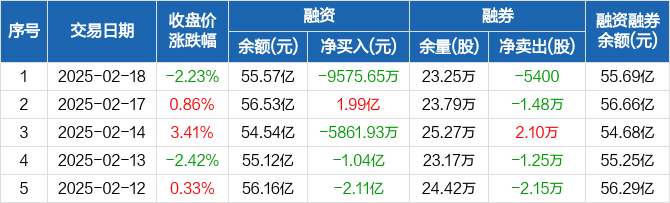 科大讯飞:融资净偿还9575.65万元,融资余额55.57亿元(02-18)