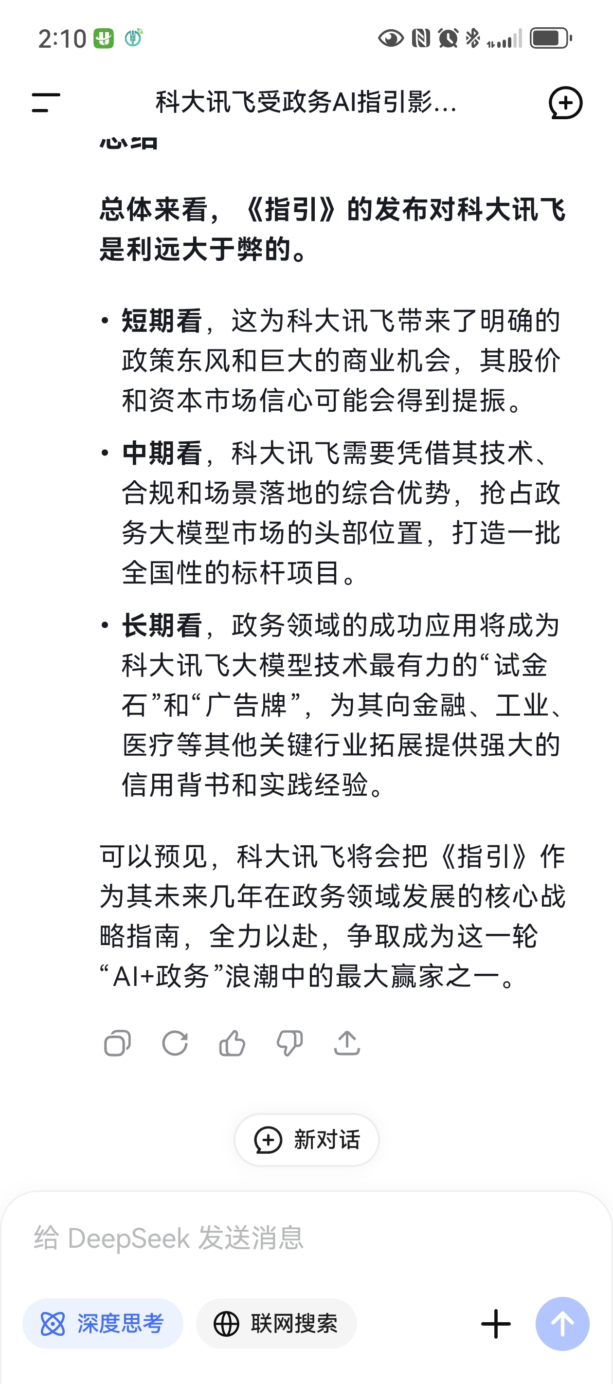 $科大讯飞(SZ002230)$ 用讯飞星火 和DeepSeek分别解读对科大讯飞的影响,结果参见图片。$昆仑万维(SZ300418)$ $阿里巴巴-W(HK|09988)$