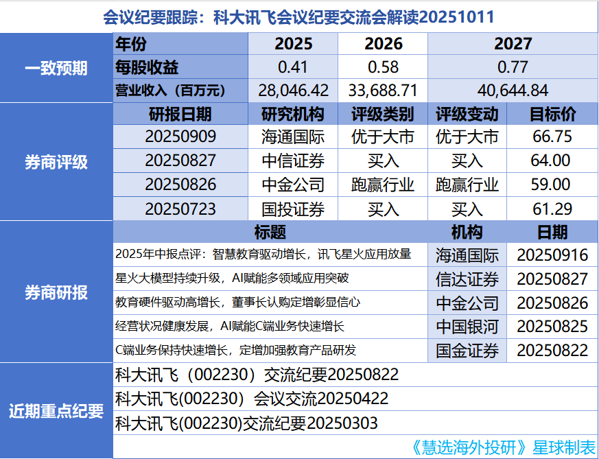 会议纪要跟踪:科大讯飞会议纪要交流会解读20251011