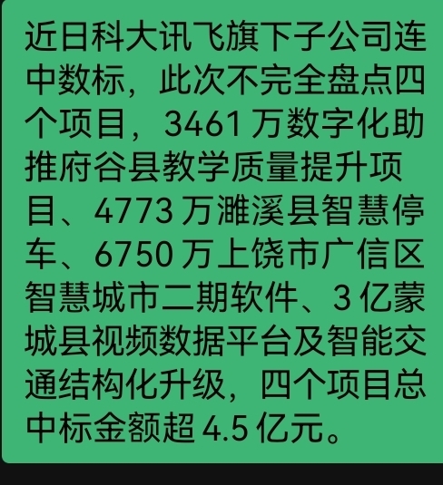 $科大讯飞(SZ002230)$ 定增40亿元其中8亿补充流动资金更是必须的,因中标项目越来越多、金额更大,但中标项目回款有一定周期,故不可放弃市场更要在行业中构筑护城河。
