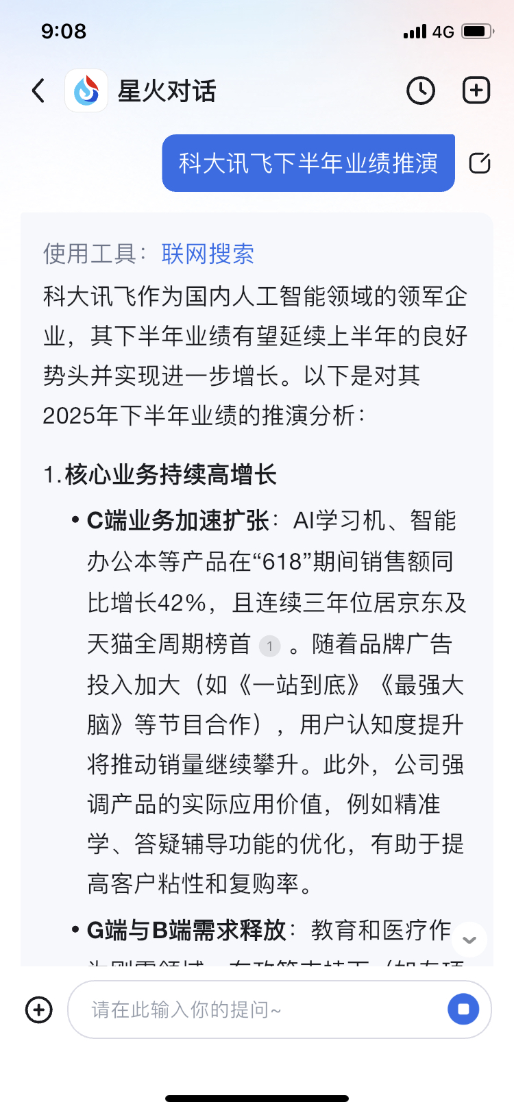 $科大讯飞(SZ002230)$ AI工具首选讯飞星火,后市可期!