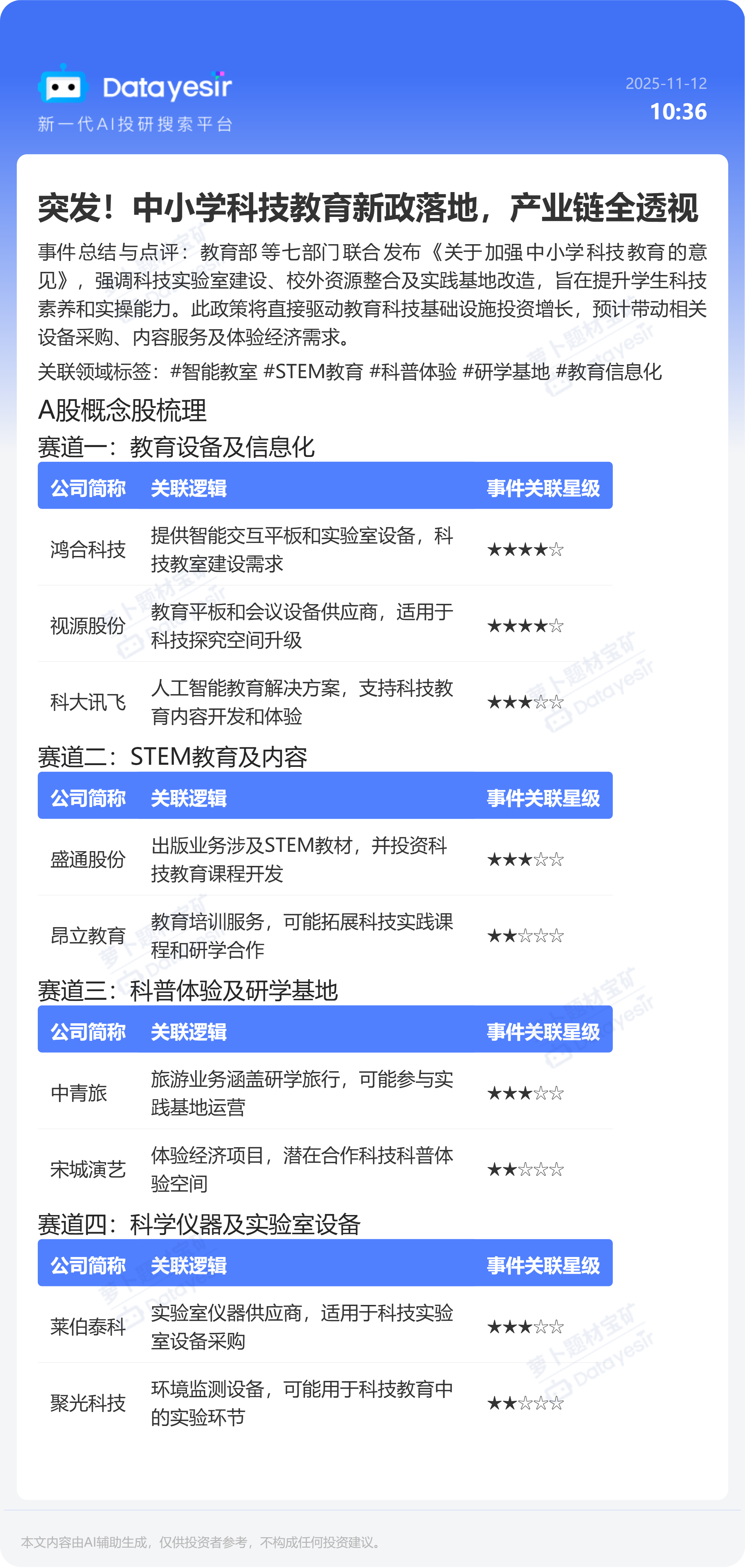 突发!中小学科技教育新政落地,产业链全透视