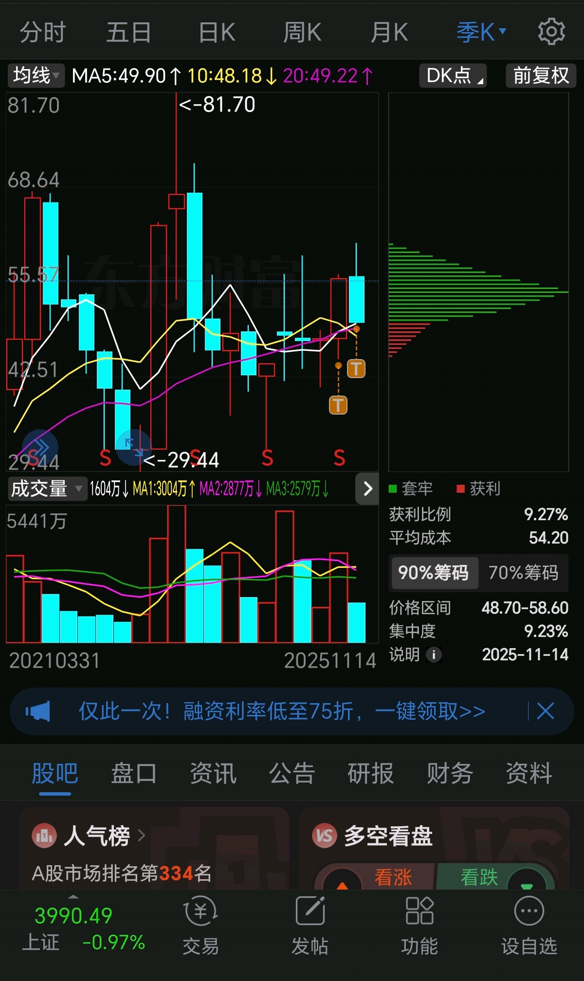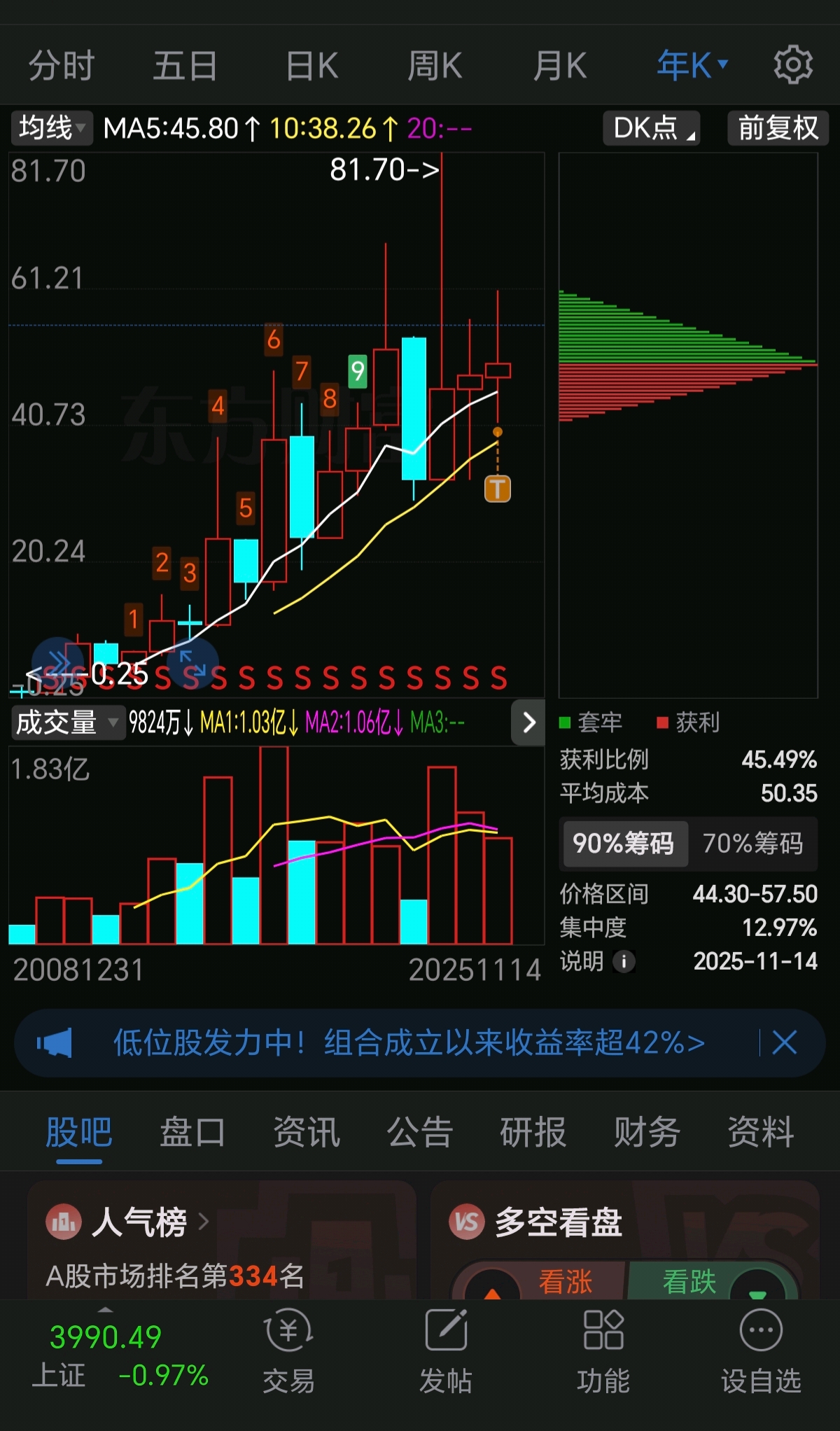 下个星期不涨,或者跌破49.9我真要跑了,真有可能是历史大顶了。