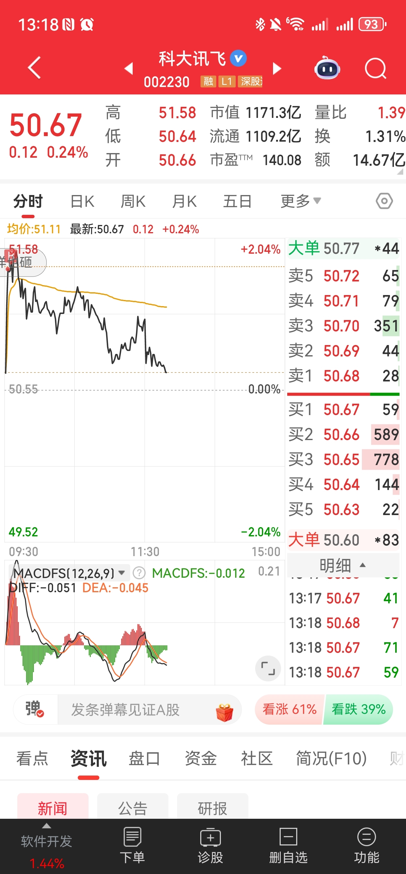$科大讯飞(SZ002230)$ 早知道就不买AI股了,买到就砸盘
