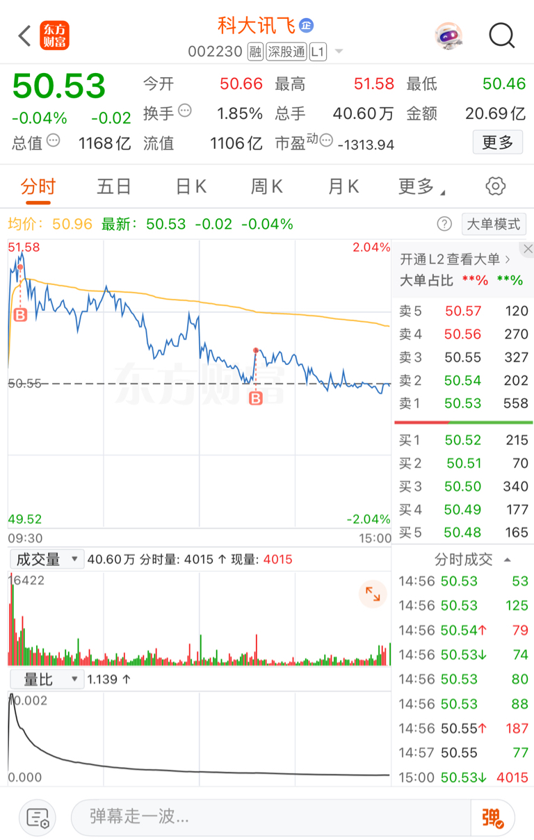 $科大讯飞(SZ002230)$ 今天是被我咂下来的,大家莫怪啊