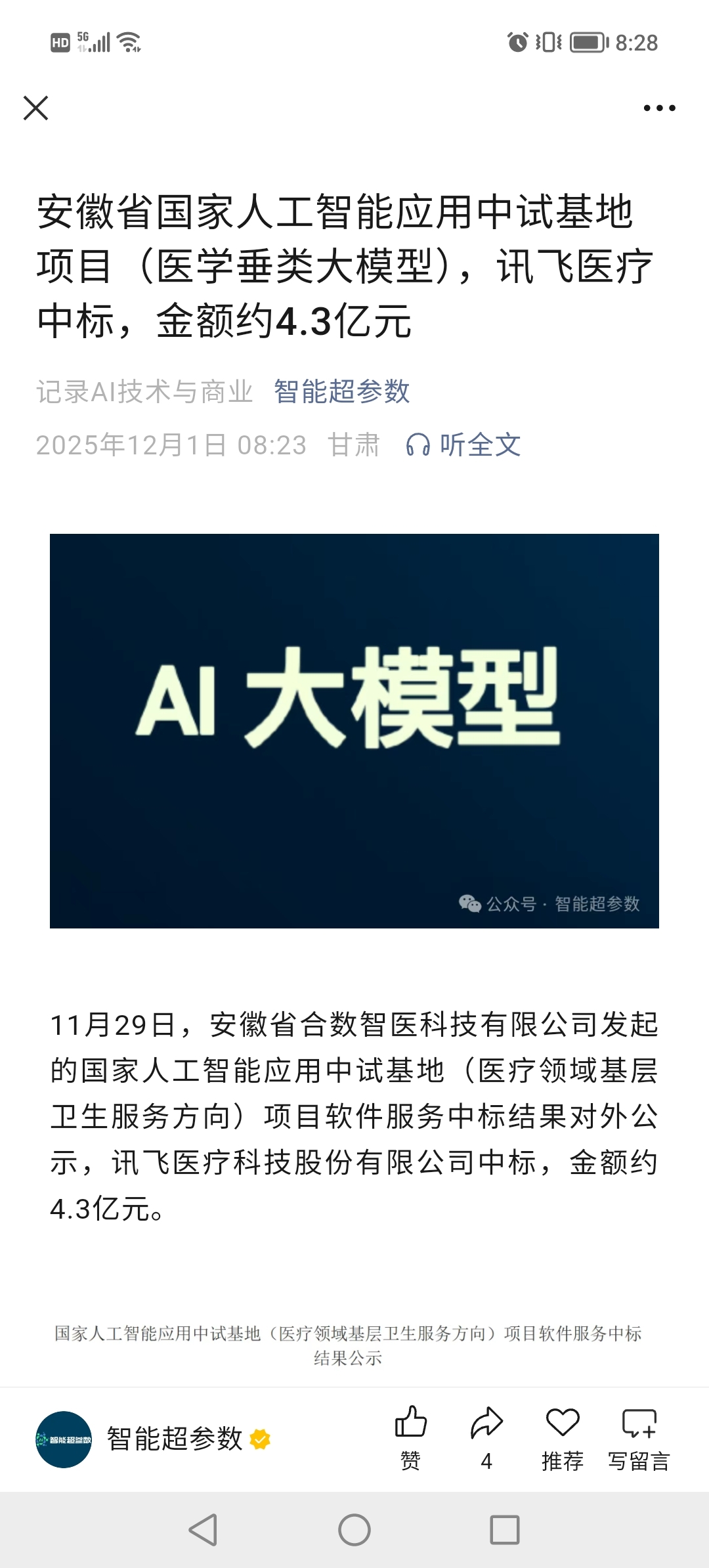 $科大讯飞(SZ002230)$ 金额其实不重要,重要的产业应用方向。国家级中试基地也就几十个,代表未来应用产业,所以中标代表这个领域实力和信任,未来蓝海可期。