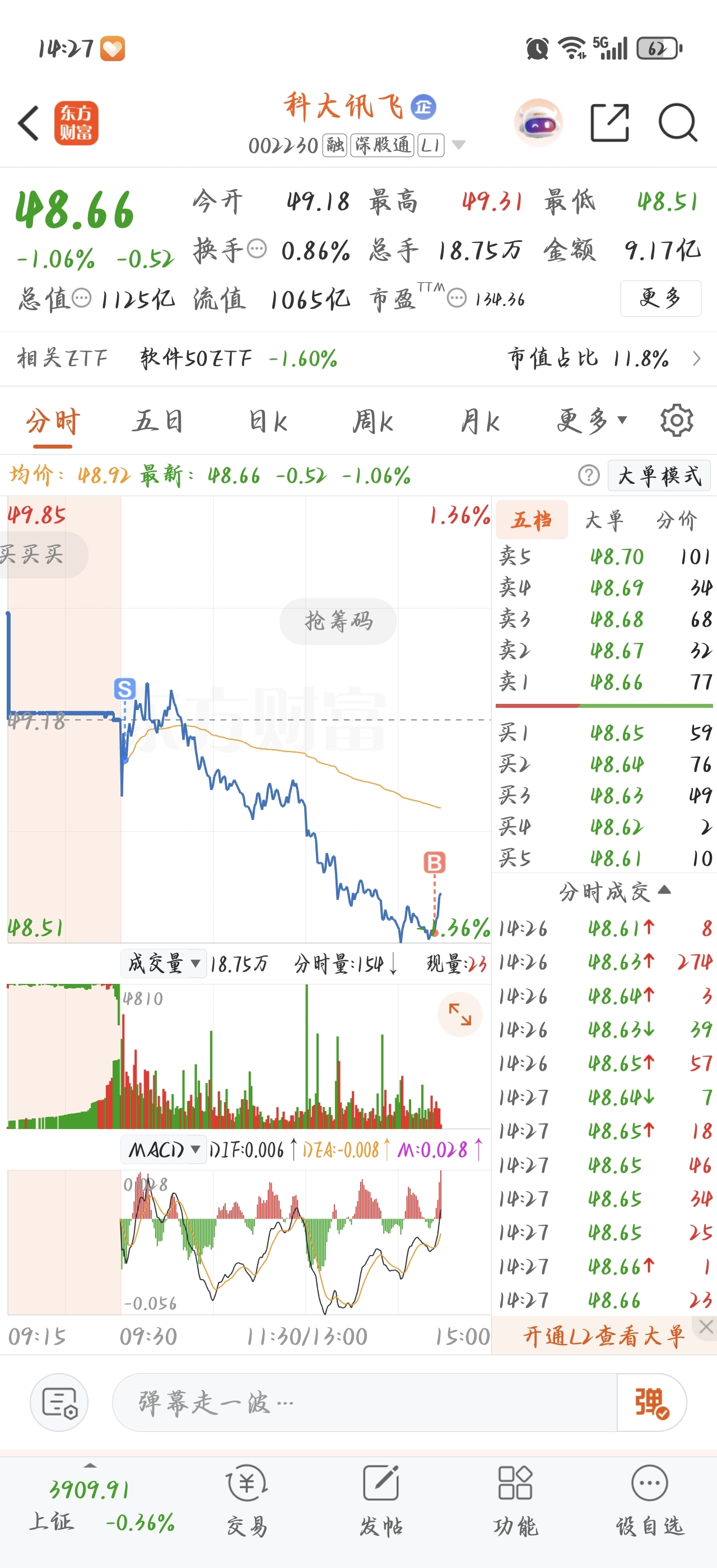 $科大讯飞(SZ002230)$ 仓位不变来回做T