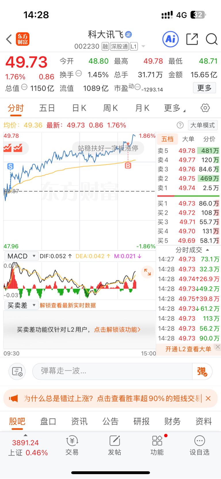 $科大讯飞(SZ002230)$ 做反了,不到56不卖
