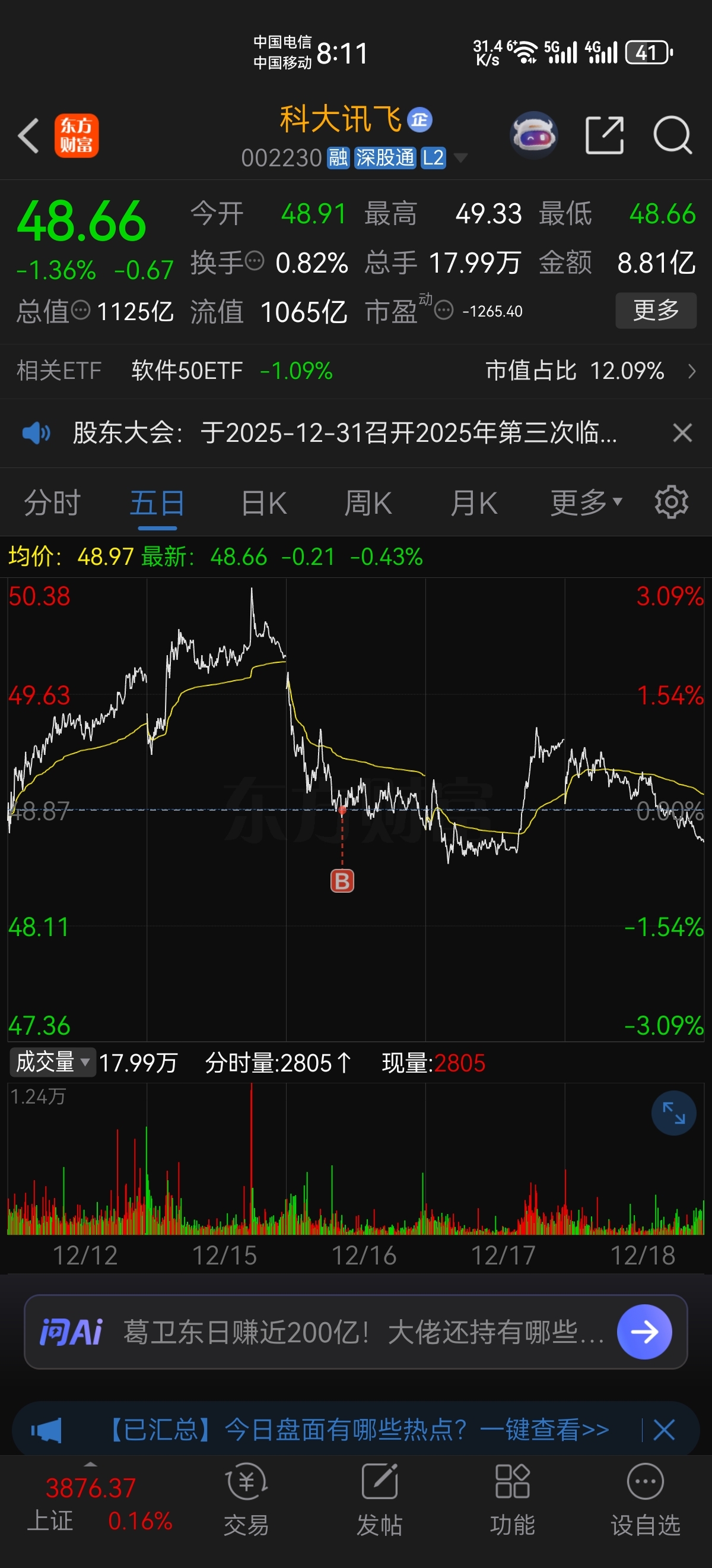 $科大讯飞(SZ002230)$ 给个面子,明天破个48.08,我就再买点