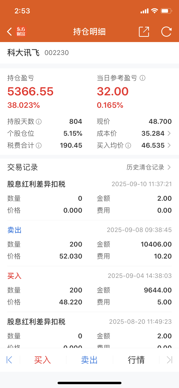 $科大讯飞(SZ002230)$ 回47.14元左右的箱体底部区域加仓2手,反弹到53元左右的箱体上沿区域减仓2手。目前来看离47元快了。一年之内能够操作2次就完成了盈利目标。