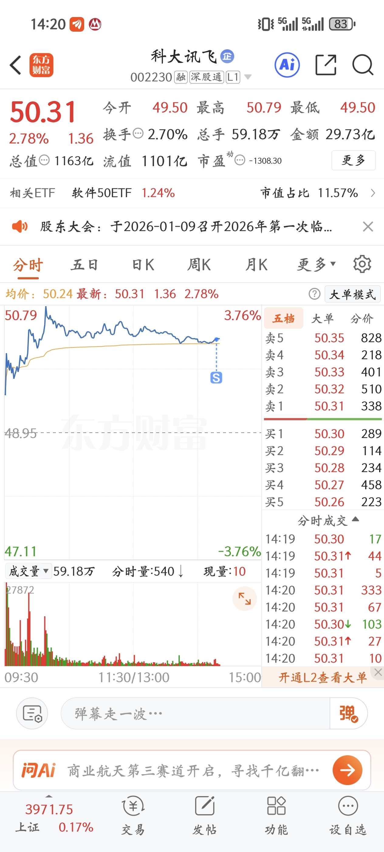 $科大讯飞(SZ002230)$ 沸V终究是沸V,无聊至极,砸盘!