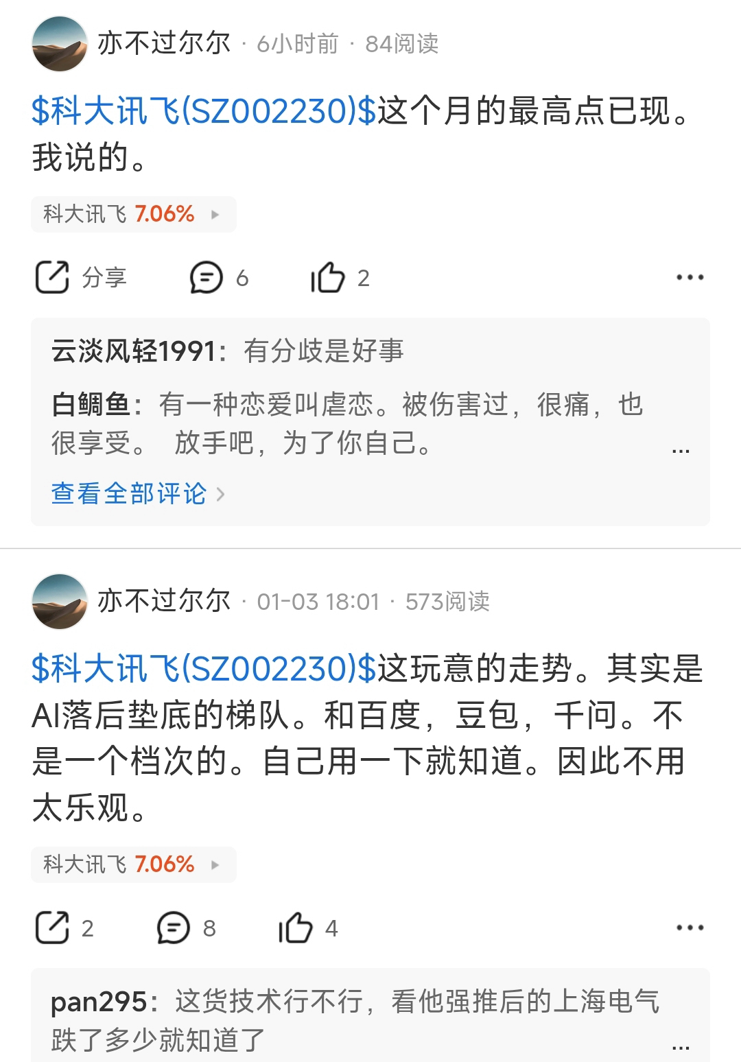 $科大讯飞(SZ002230)$ 这货昨天还发贴今天会大跌撒,今天大涨就删除了,改成今天是最高点