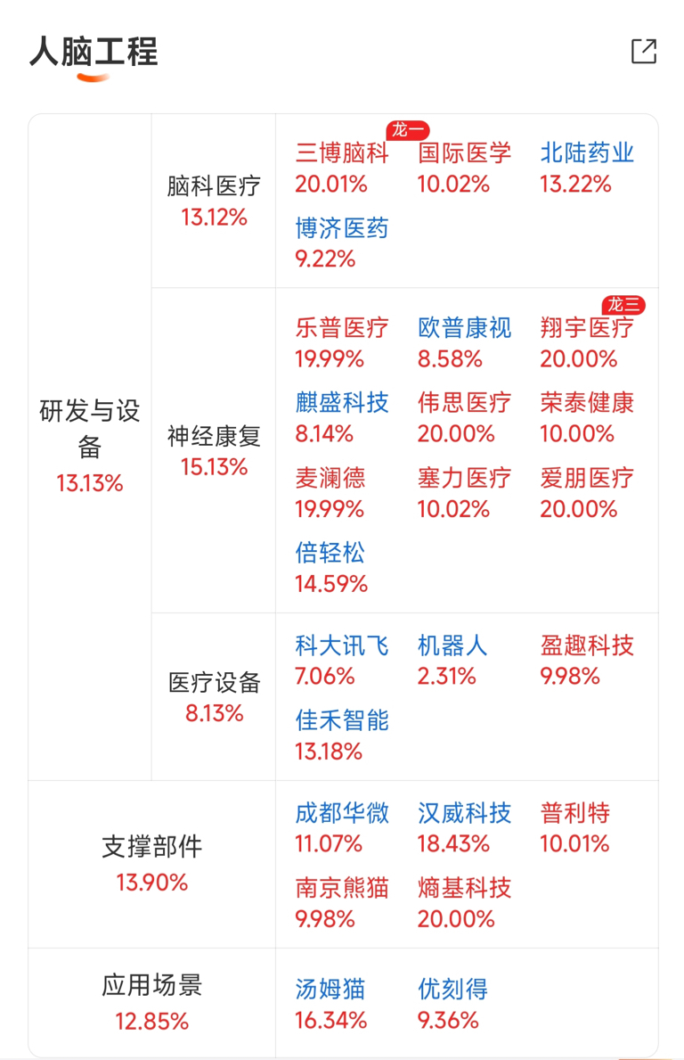 2026年A股开门即炸场!上证指数突破4000点大关的背景下,人脑工程与脑机接口板块成为绝对“顶流”,以13.70%的惊人涨幅领涨全场,用一场酣畅淋漓的涨停潮拉开新年行情序幕 。这场狂欢的背后,是政策、技术、商业化的三重共振,让曾经的科幻概念正式迈入产业化拐点。
