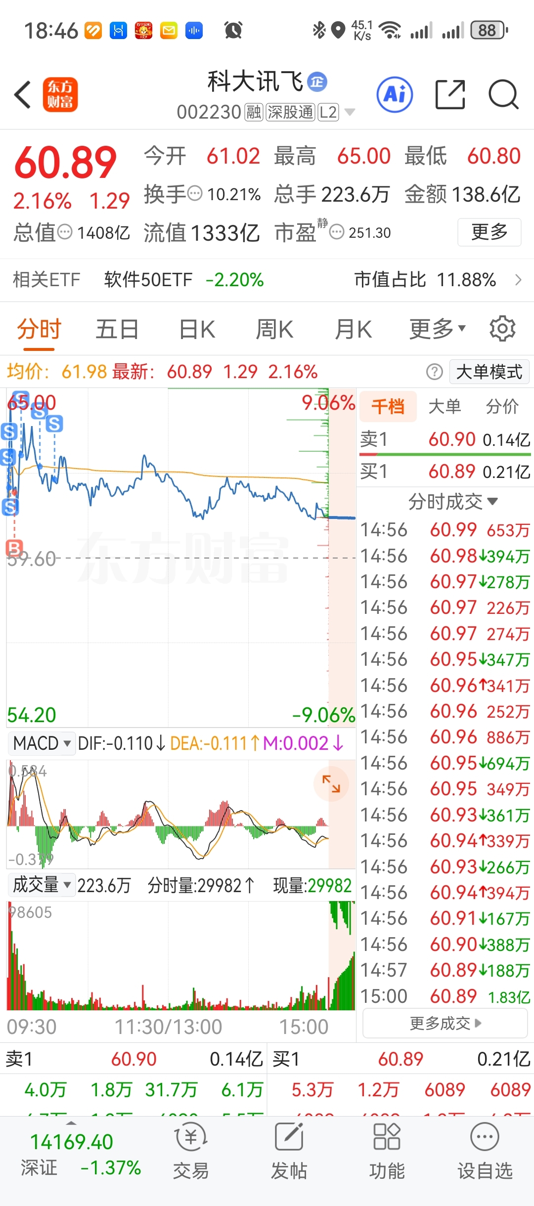 $科大讯飞(SZ002230)$ 今天把我洗出去了,明天怎么办,家人们,要不要追高呢?
