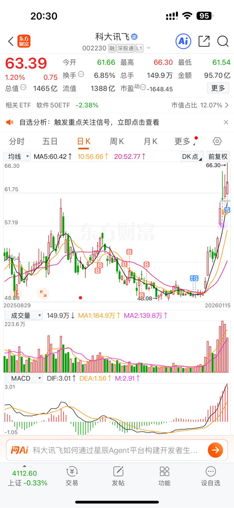 $科大讯飞(SZ002230)$ 今天30个全清了,明天能不能来个大跌让我接回来