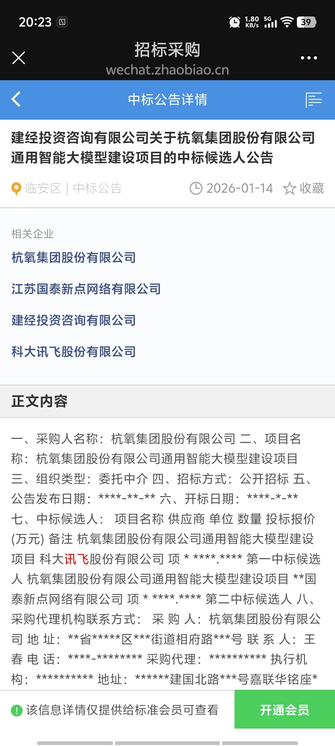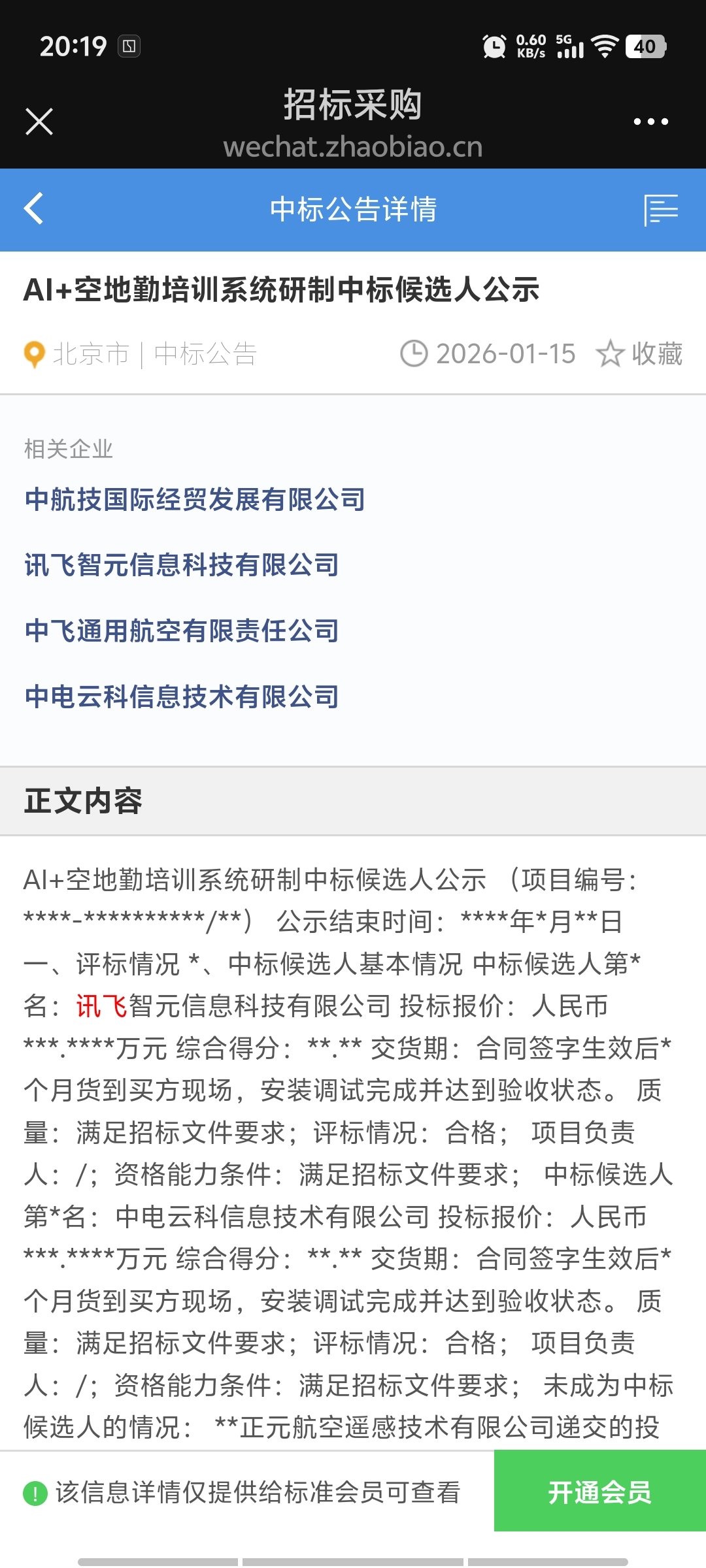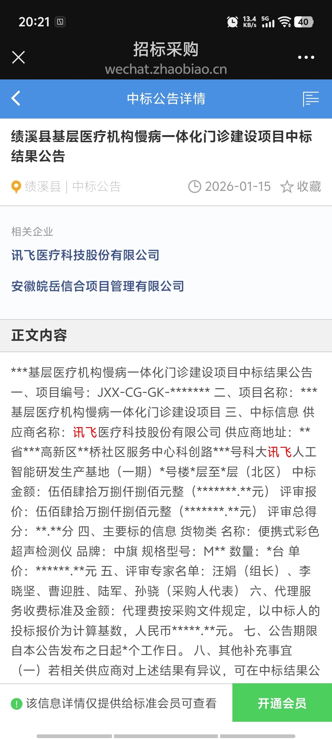 1月15日科大讯飞中标:医院,企业,工业声学,健康服务,大学经济大模型,航空地勤