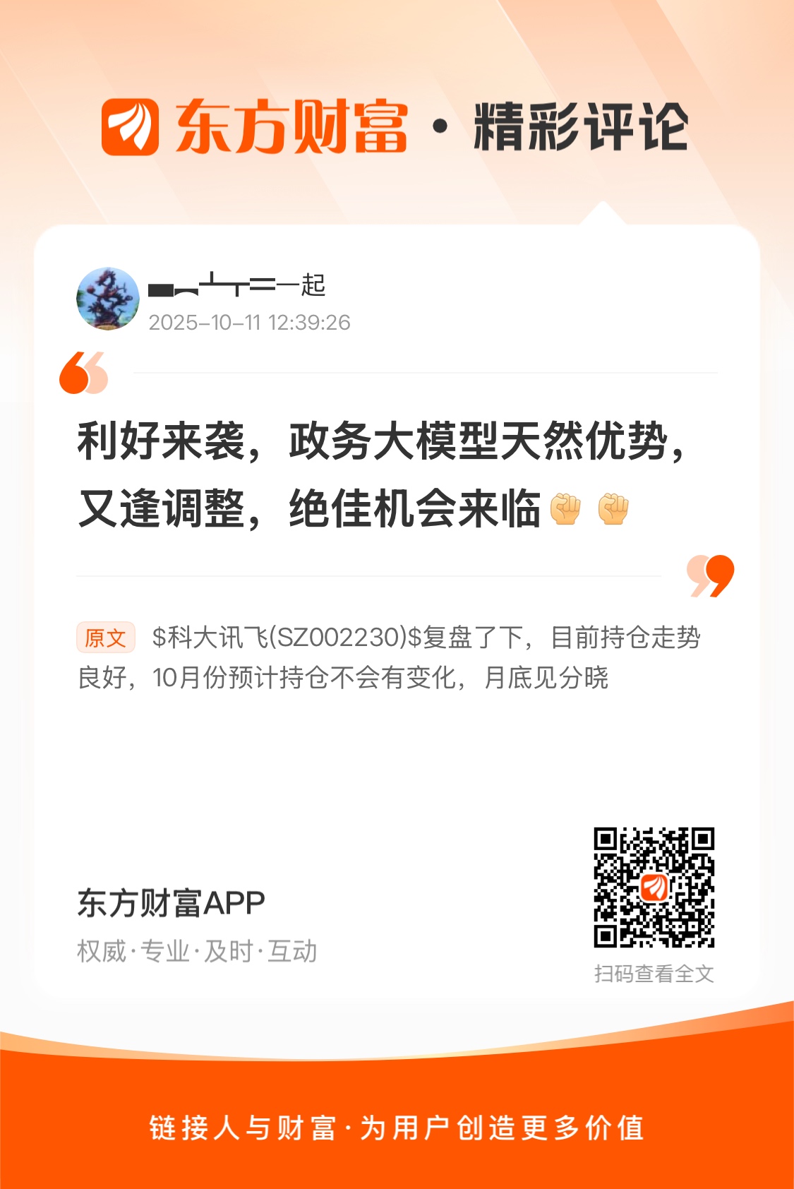 $科大讯飞(SZ002230)$  复盘了下,目前持仓走势良好,10月份预计持仓不会有变化,月底见分晓