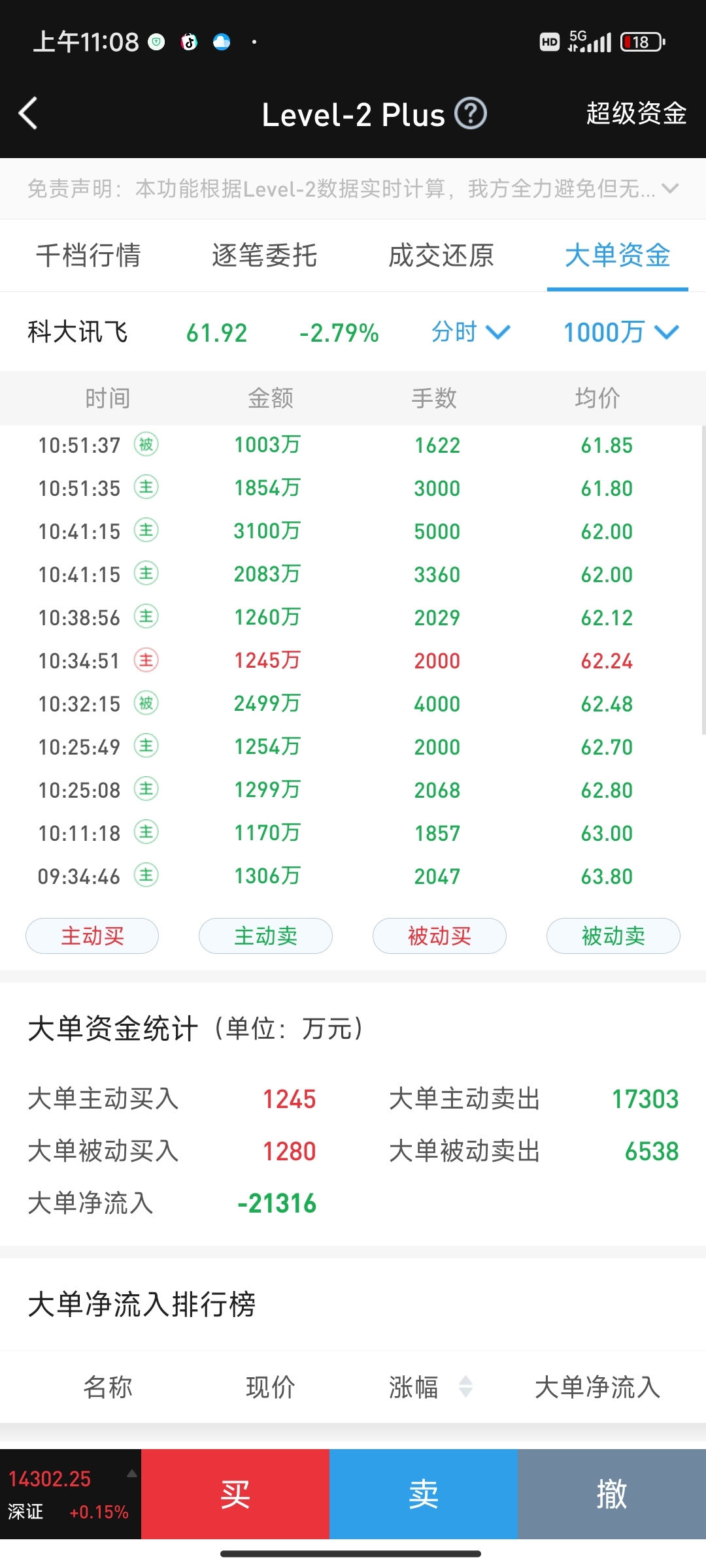 $科大讯飞(SZ002230)$ 都是大单在出货