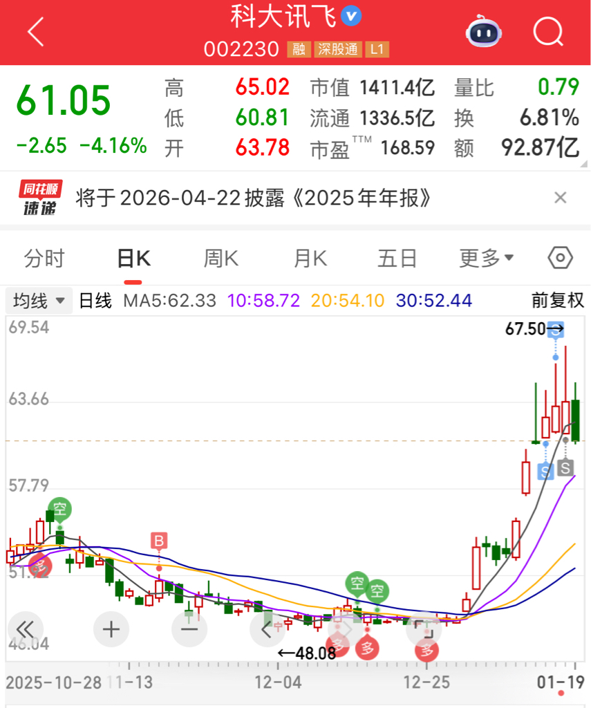 $科大讯飞(SZ002230)$ 短线卖出信号很明显。已清仓