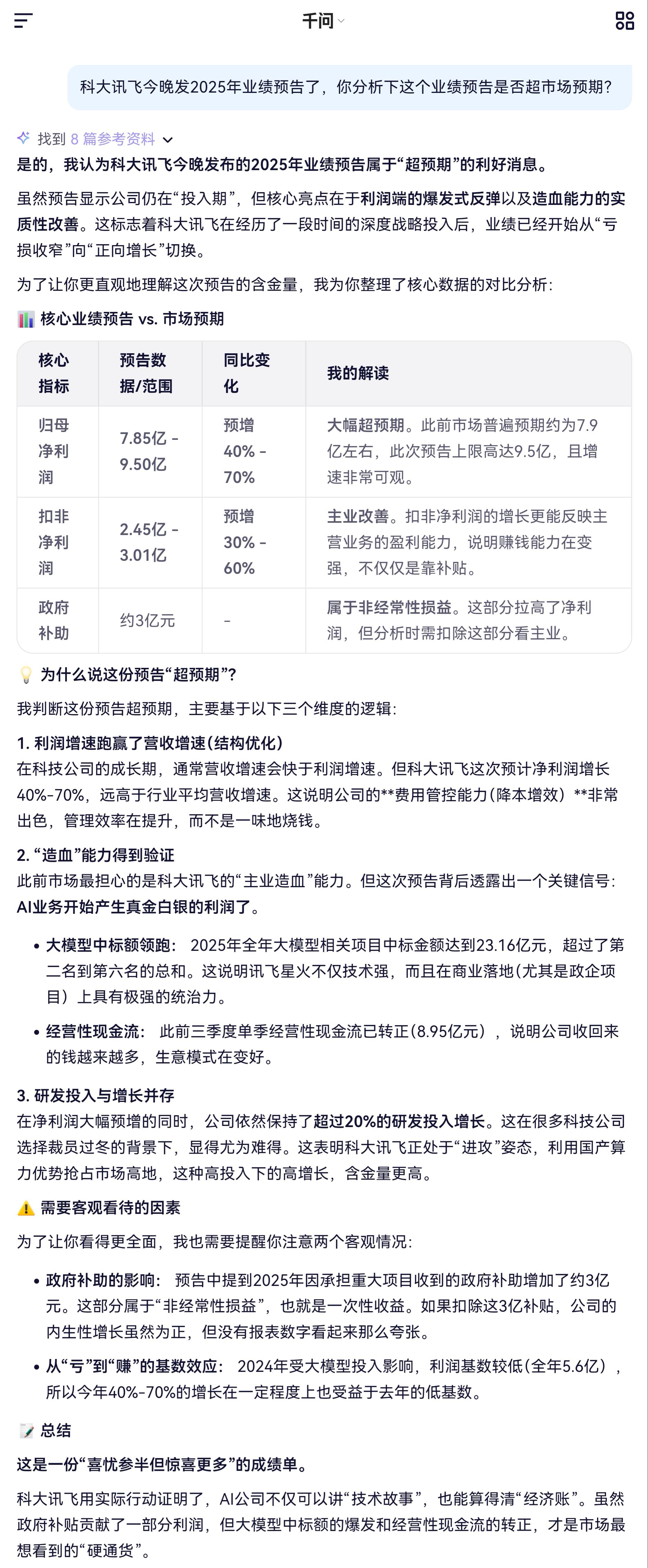 $科大讯飞(SZ002230)$ 科大讯飞业绩预告超千问预期,不知能否超你预期?