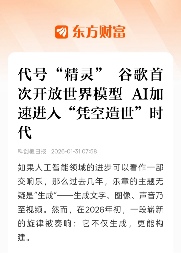 代号“精灵” 谷歌首次开放世界模型 AI加速进入“凭空造世”时代