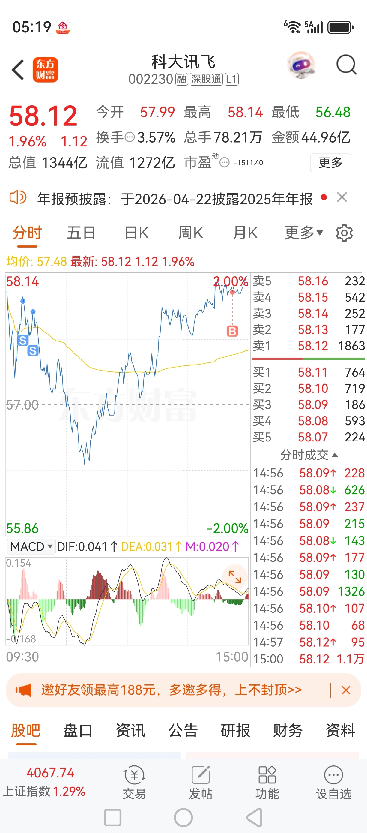 $科大讯飞(SZ002230)$ 今天成功做了个反T