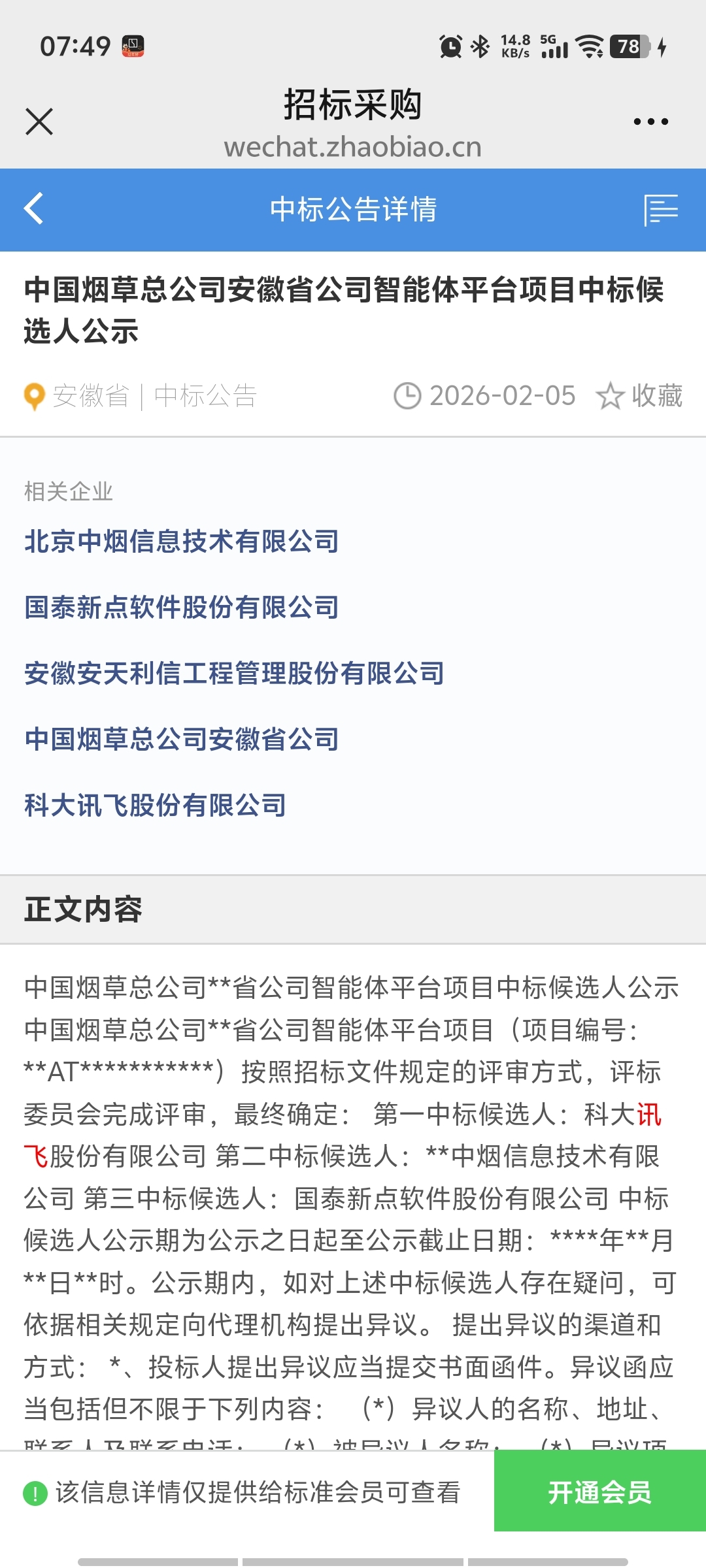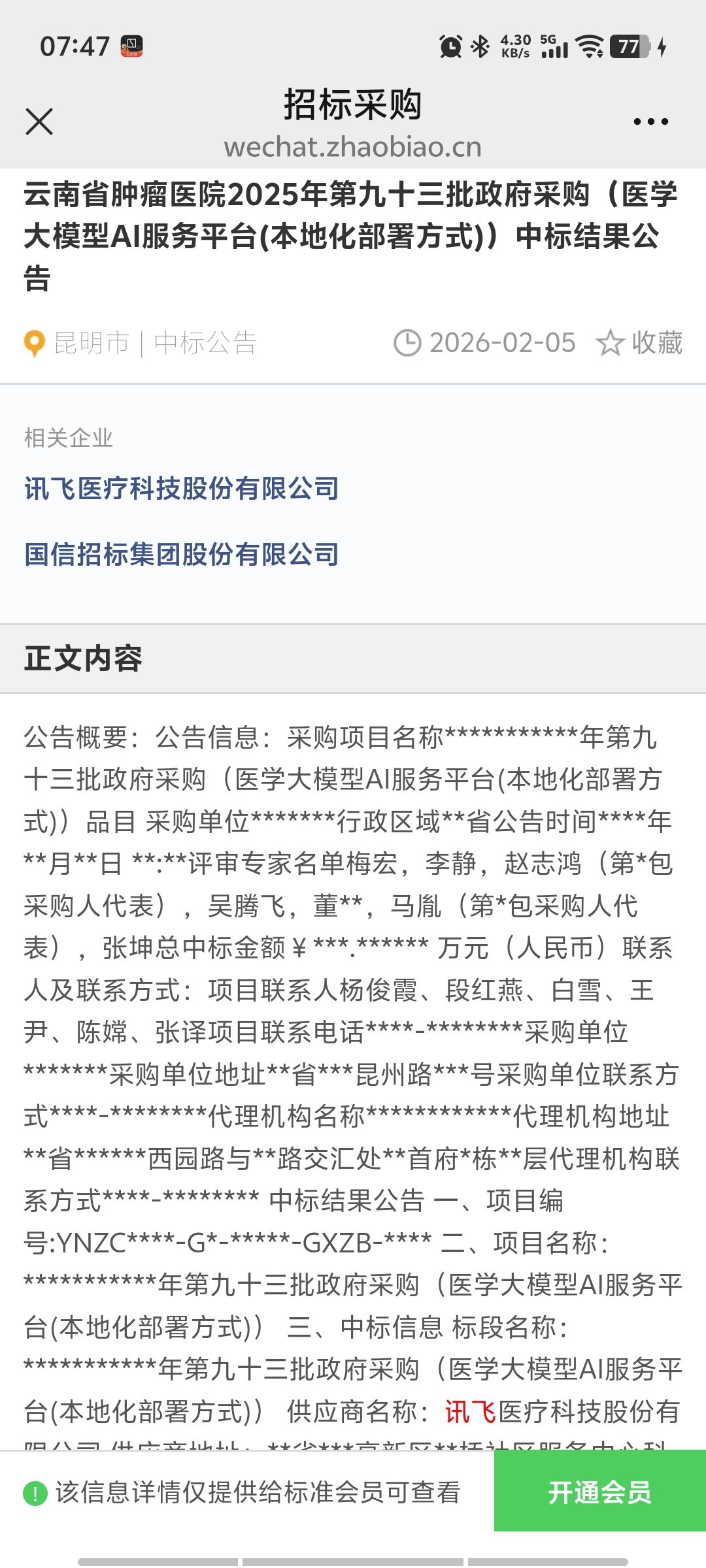 $科大讯飞(SZ002230)$ 2月5日科大讯飞中标的量,市场眼瞎!