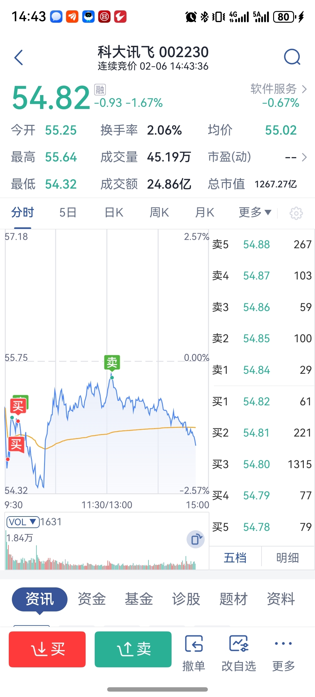 $科大讯飞(SZ002230)$ 今日完美t,涨跌都开心,下周继续
