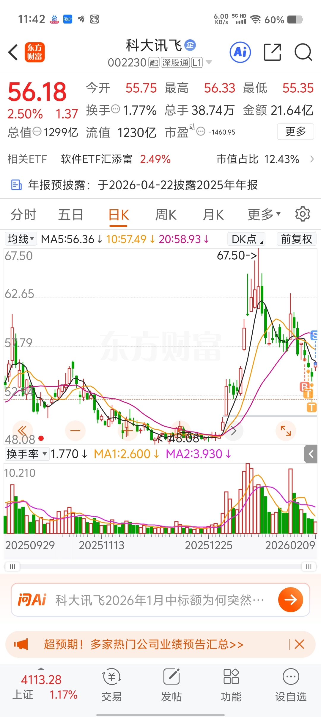 $科大讯飞(SZ002230)$ 买了5手两万多。玩了四天。现在还是两万多仓位。挣了七个多点。果然轻仓好操作啊。