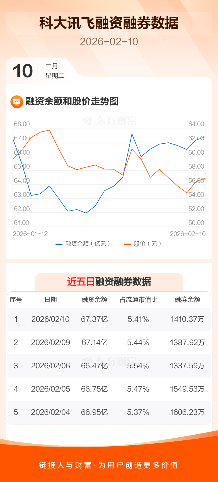 交易所最新数据显示,科大讯飞于2026年2月10日获融资买入4.04亿元,融资偿还3.80亿元,当日融资净买入2329.44万元。目前,该股融资余额67.37亿,占流通市值比例为5.41%。