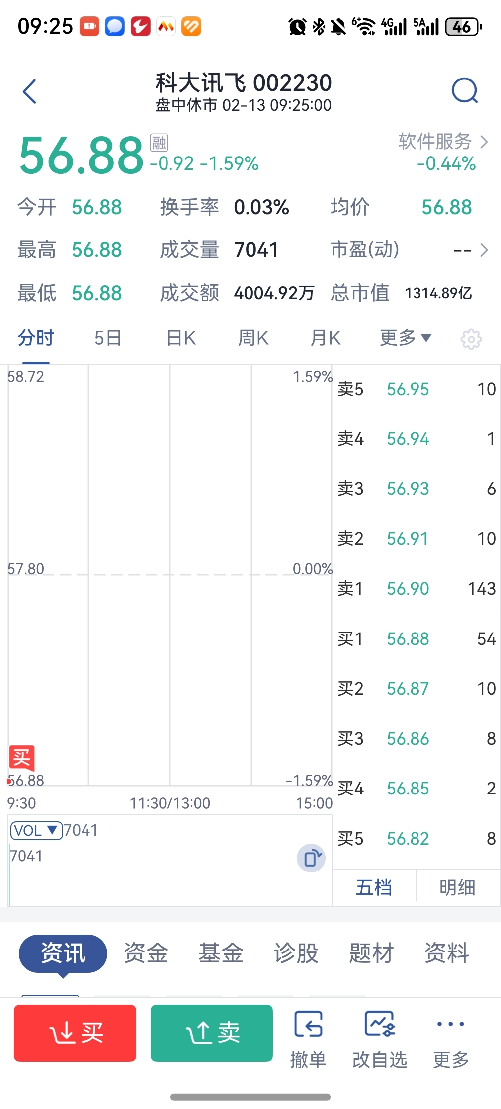 $科大讯飞(SZ002230)$ 竞价直接成交了,看看大哥能不能给口汤喝了