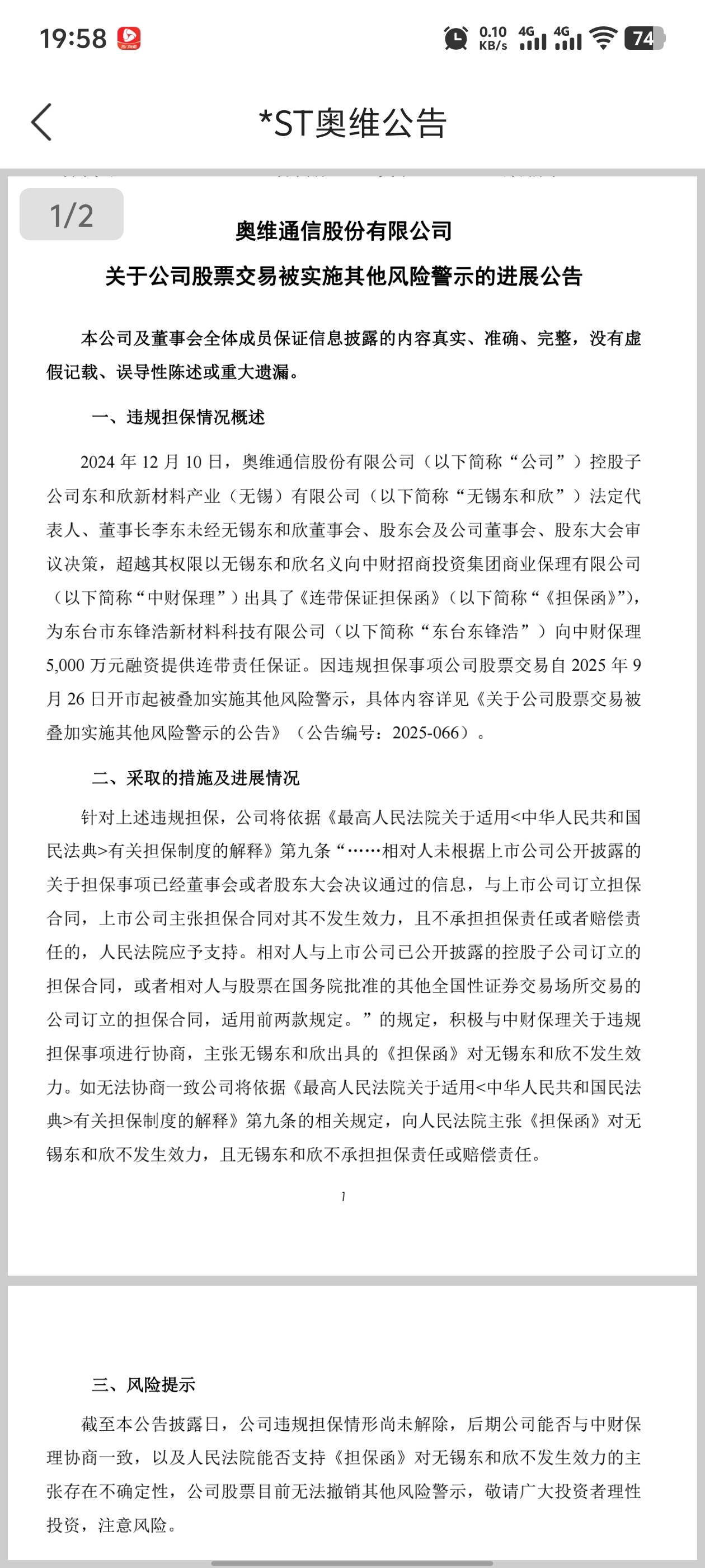 这个提示是不是就是说明,担保合同,属于李东个人行为,上市公司以及子公司无锡东和欣无需承担任何担保关联连带责任!根据法律法规,法院应该给予支持,虽说标题是风险提示,看情况算是利好消息