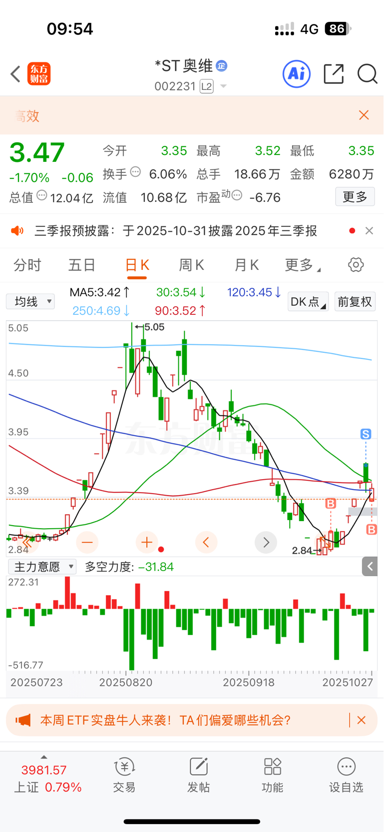 $*ST奥维(SZ002231)$ 总不至于亏损吧