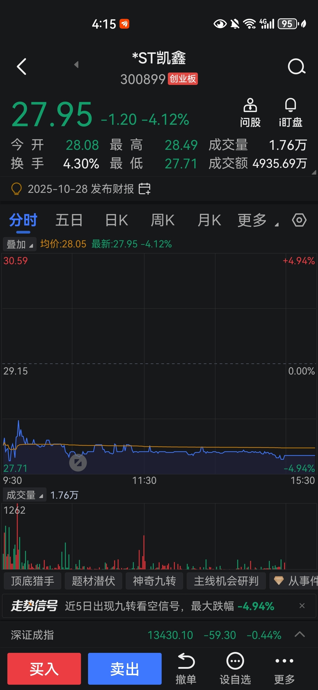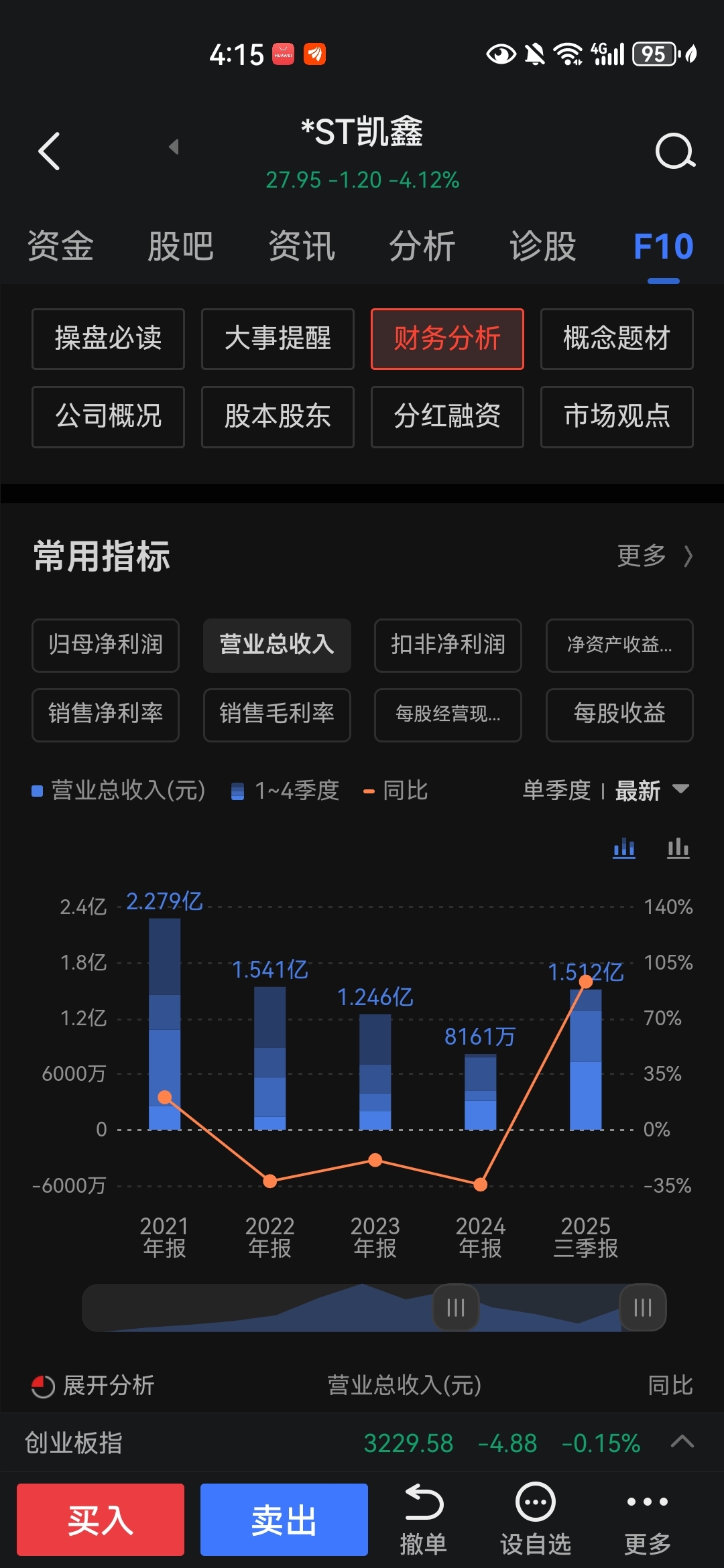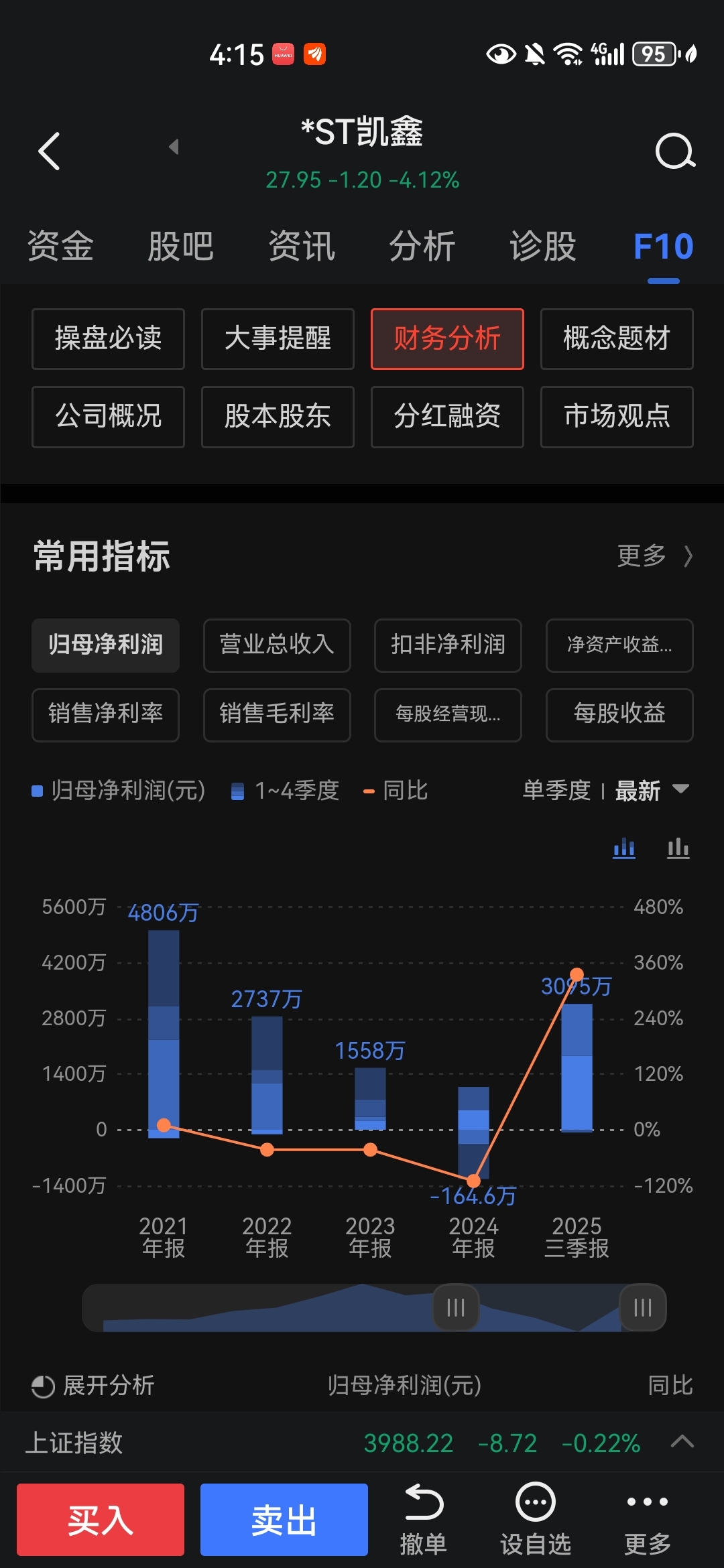 $*ST奥维(SZ002231)$ 复盘发现一个特别的现象,三季报特别差的岩石今天收红盘,而三季报特别好的比如st凯鑫,今天大跌,是不是资金只考虑弄三季报差的,这样年底之前就有各种保壳动作有预期的,如果已经确定可以摘帽的,资金反而就撤了,所以现在资金极度关注年底奥维的动作