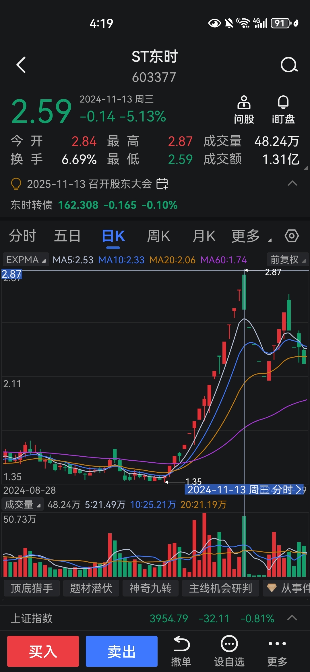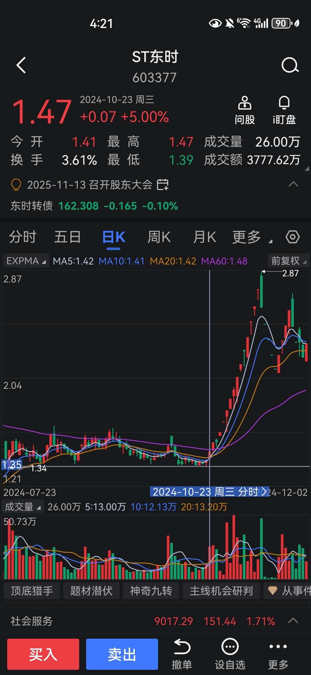 去年10月底的东时也是没涨太多,从1.35左右开始启动,那时1.35价格的流通市