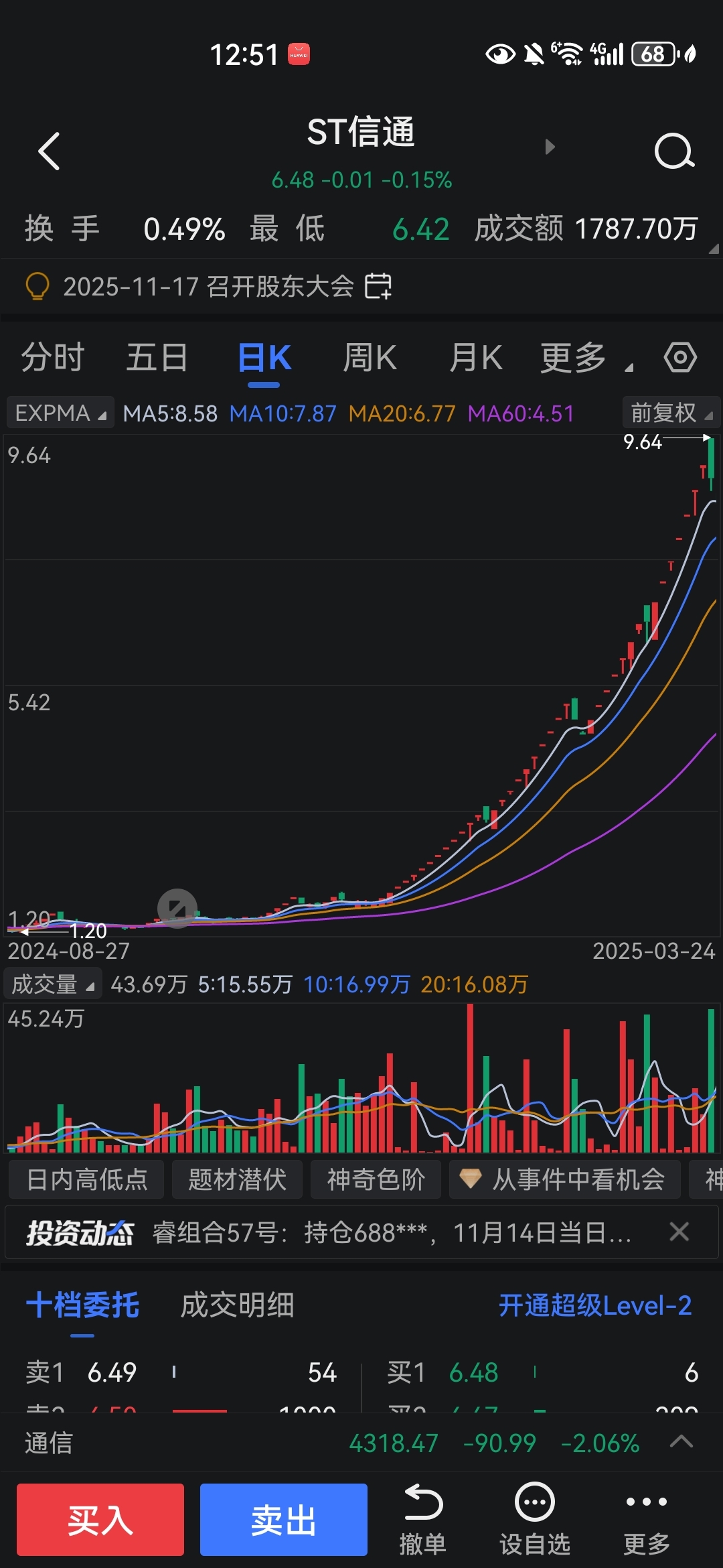 $*ST奥维(SZ002231)$ 里面的大哥周末可以考虑下,下周二开股东会,如果就像吧里大多数人看空预测的那样,明年出年报后退市,总得选时间拉高把货出了吧,年报真空期就剩几个月了,如果有高手提前知道不退市,现在像信通那样前期也是压着,明年才启动,那就拿着吧,只能边看边研究